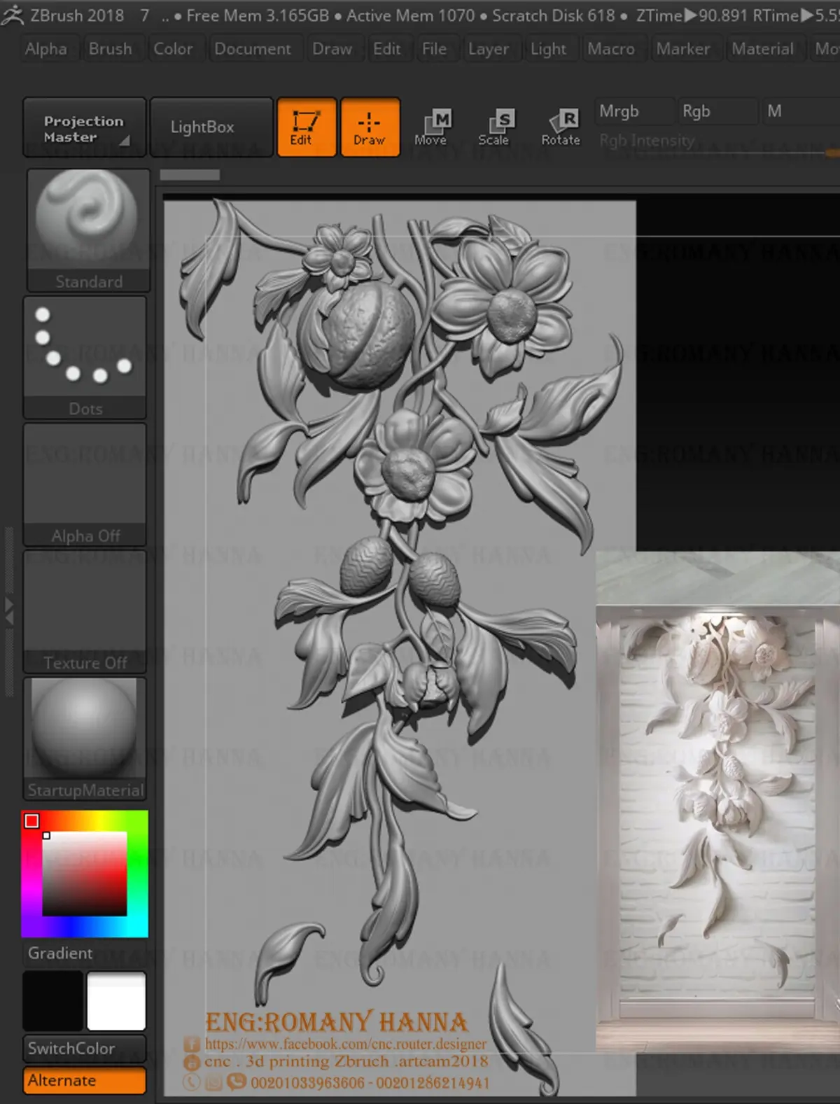 Model created, edited , rendered in Zbrush - artcam software,ready for PRINTING OR MILLING ON CNC