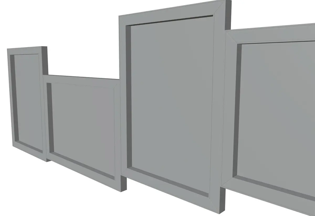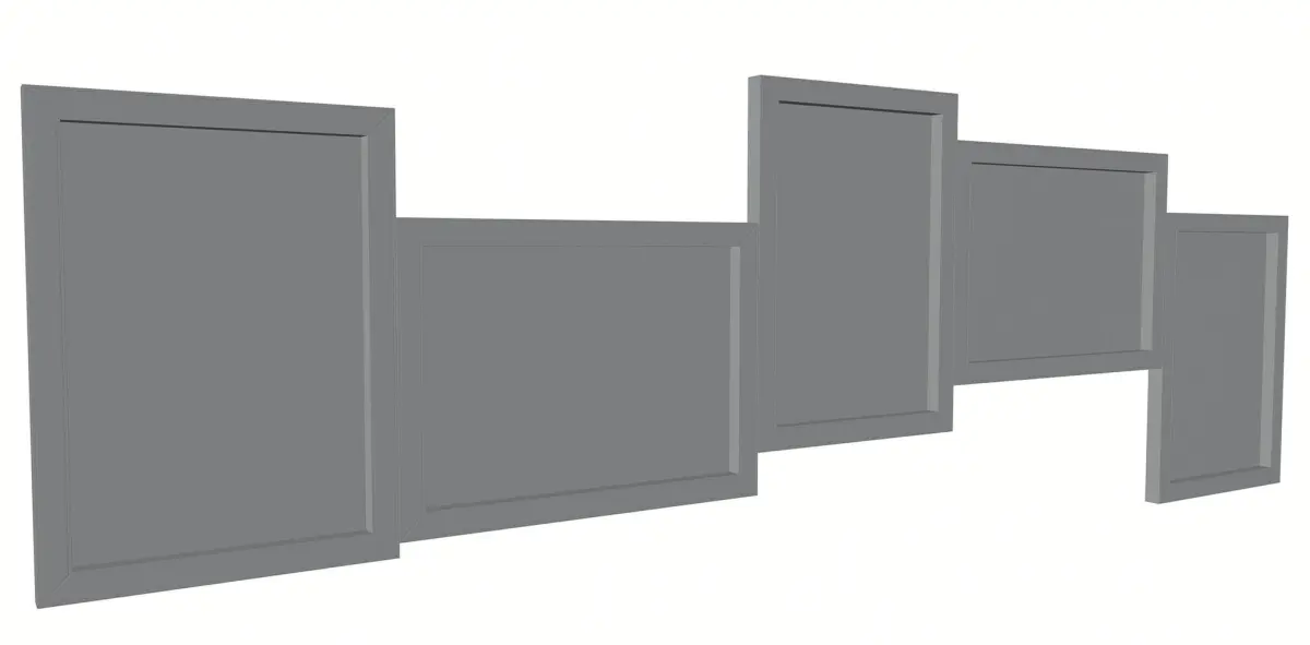 This realistic model includes home decoration consisting of five pictures arranged in a straight line. Frames in white and gray. Model prepared for 3d architectural visualisations and other graphic works.