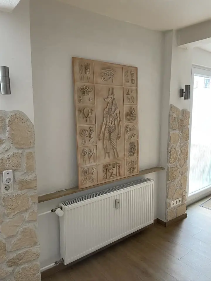 Wall decoration panel with Ancient Egyptian motifs 120x80cmfor hanging on the wallThe panel has a fixed size of 80 cm (W) x 120 cm (H)3D print modelHigh-Polygon