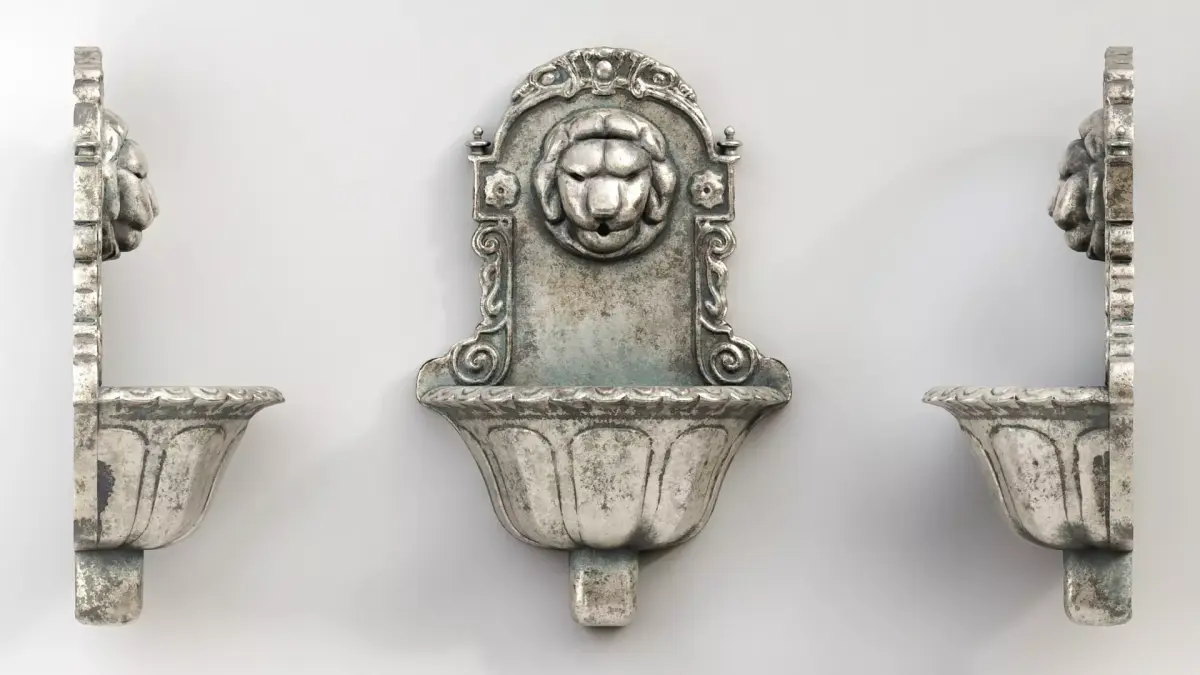 Materials: The Wall fountain has one material applied with PBR textures in 4096x4096 (ambient occlusion, color, roughness, metallic and normal map). The vray 3ds max file is provided with vray materials using PBR textures. The blender file use materials created with PBR textures. Each material and texture is named .