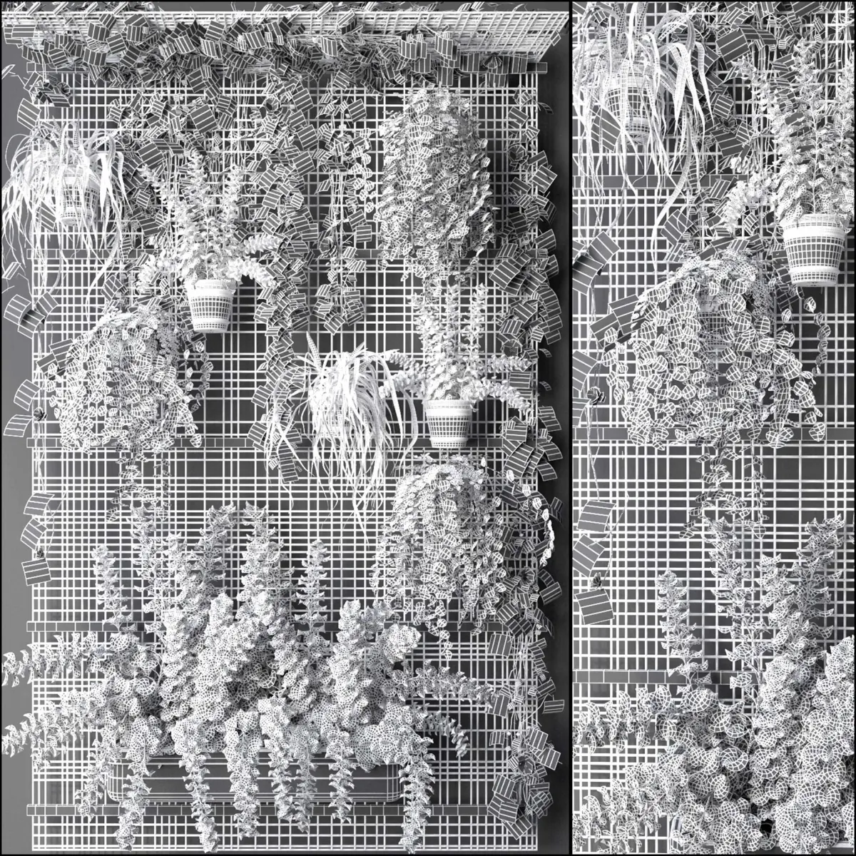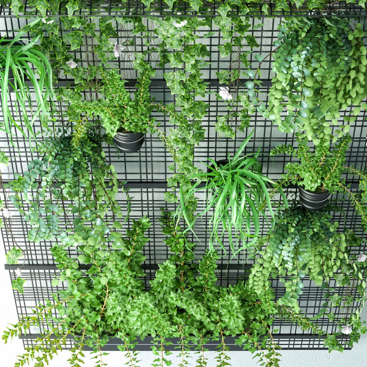 A main focal tropical vertical garden with a lot of planter.
