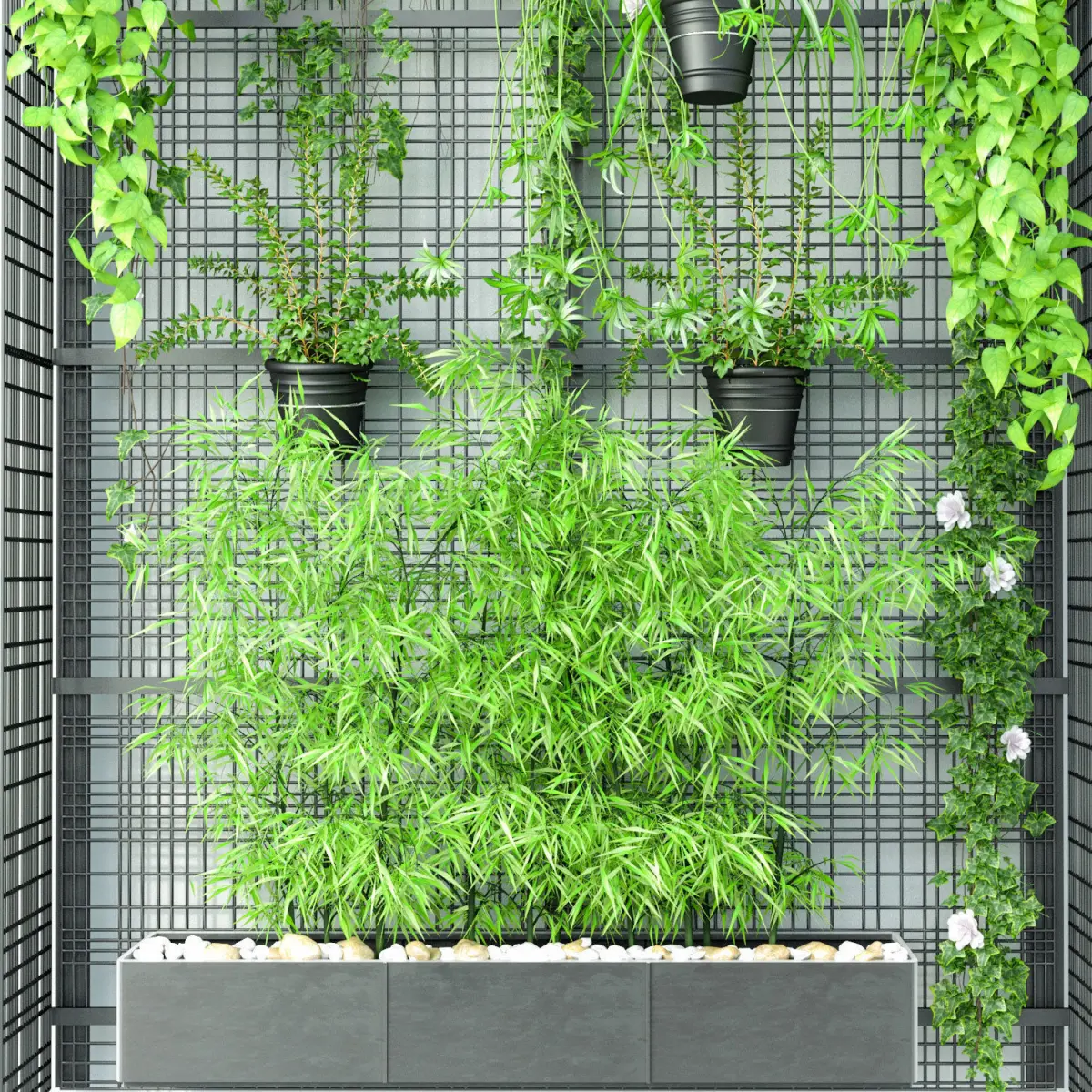 A main focal tropical vertical garden with a lot of planter.