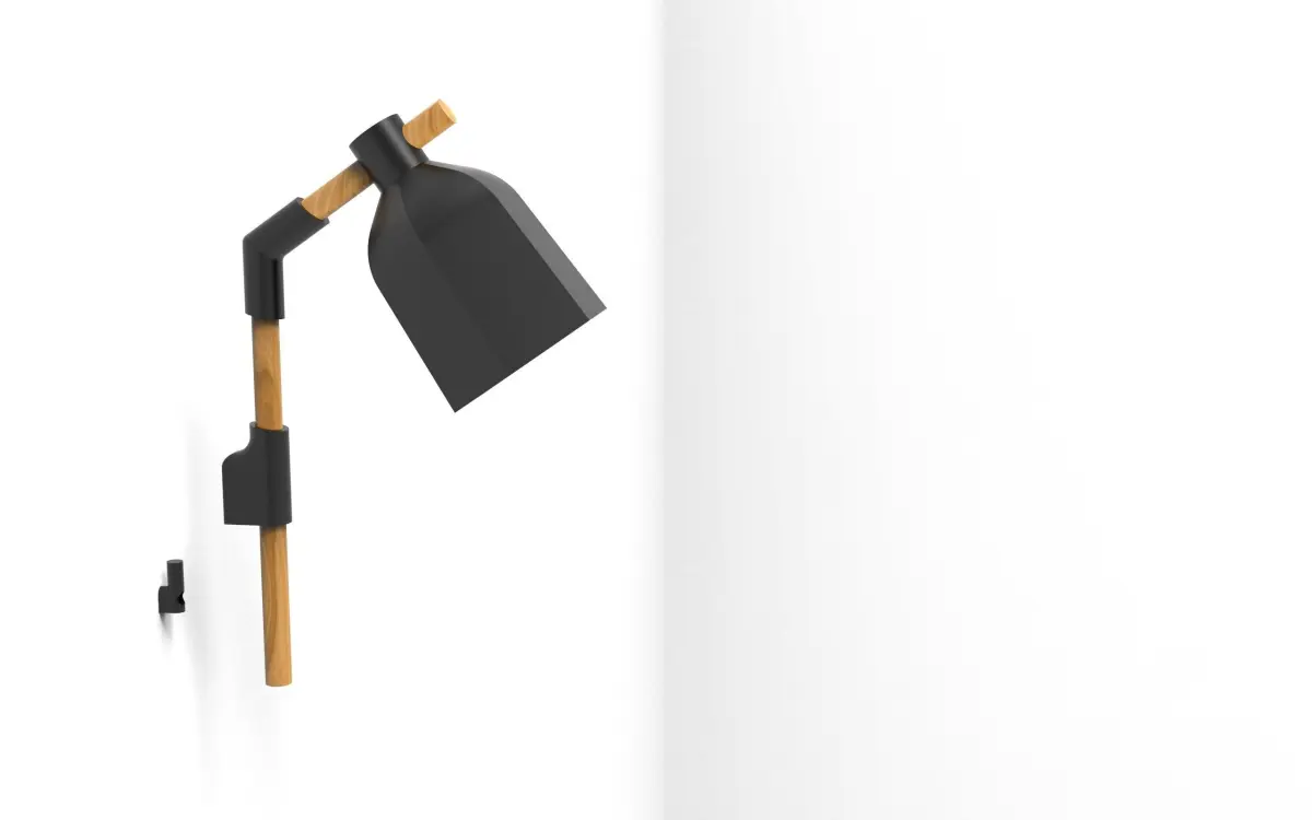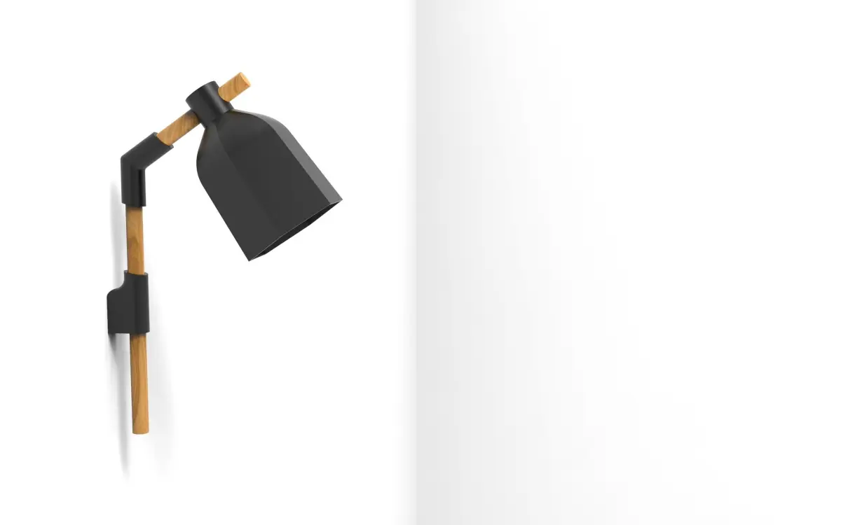 Lamp designed to be 3D printed, with 3D printed joints, 15mm wooden rods and a lamp holder. It has a minimalist style and is designed to match the rest of the elements of the furniture range. To create it you will need to 3D print the necessary parts, 15mm diameter wooden rods of the size shown in the attached image and a lamp holder for an E14 size bulb. The rods should be 15 mm in diameter and the lengths: 1x12 cm and 1x24 cm. The lampholder used is for E14 bulbs, it must have a thread to attach to the piece of the lamp, it is indicated in an image. I have used this one: https://bit.ly/31g6WPr with the option half thread.