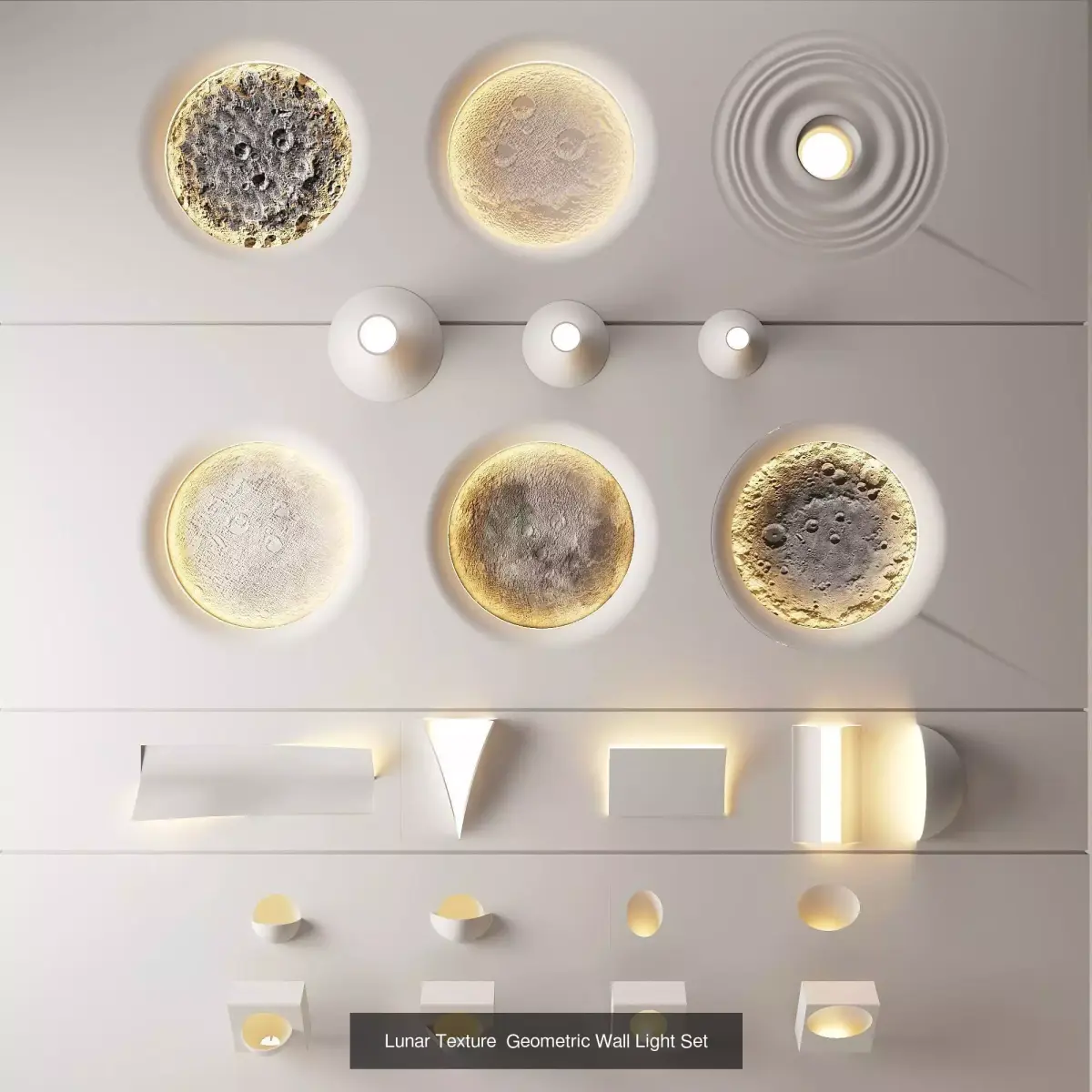 Product Introduction:High-quality minimalist geometric and organic light fixture collection 3D model, including various types such as wall lights, ceiling lights and table lamps, covering rich shapes like square, circular, teardrop and ripple. It restores the matte white plaster, metal and other materials and hidden light source details, with both decorative and lighting functions, suitable for interior design visualization, soft decoration matching effect display and commercial space scene construction in modern light luxury, minimalism and other styles.Model Description:This model is created and rendered with 3Dmax and Corona, including texture maps and lighting. Re-linking textures is required when using other formats. Welcome to visit my homepage. Please contact me if you have any questions, thank you.