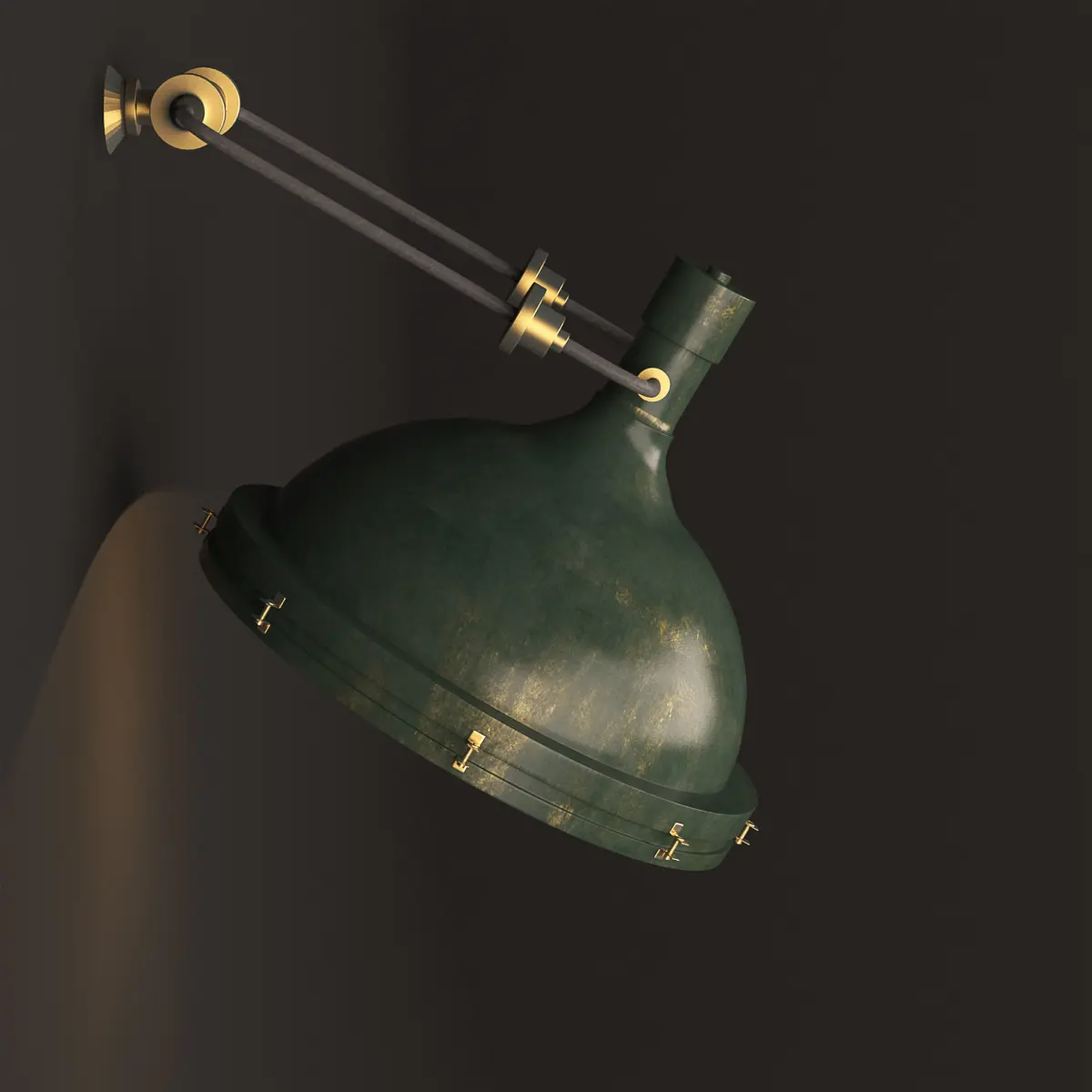 model in 3dsmac vray rendererwall lamp, green, gold, rusty, edison lamp