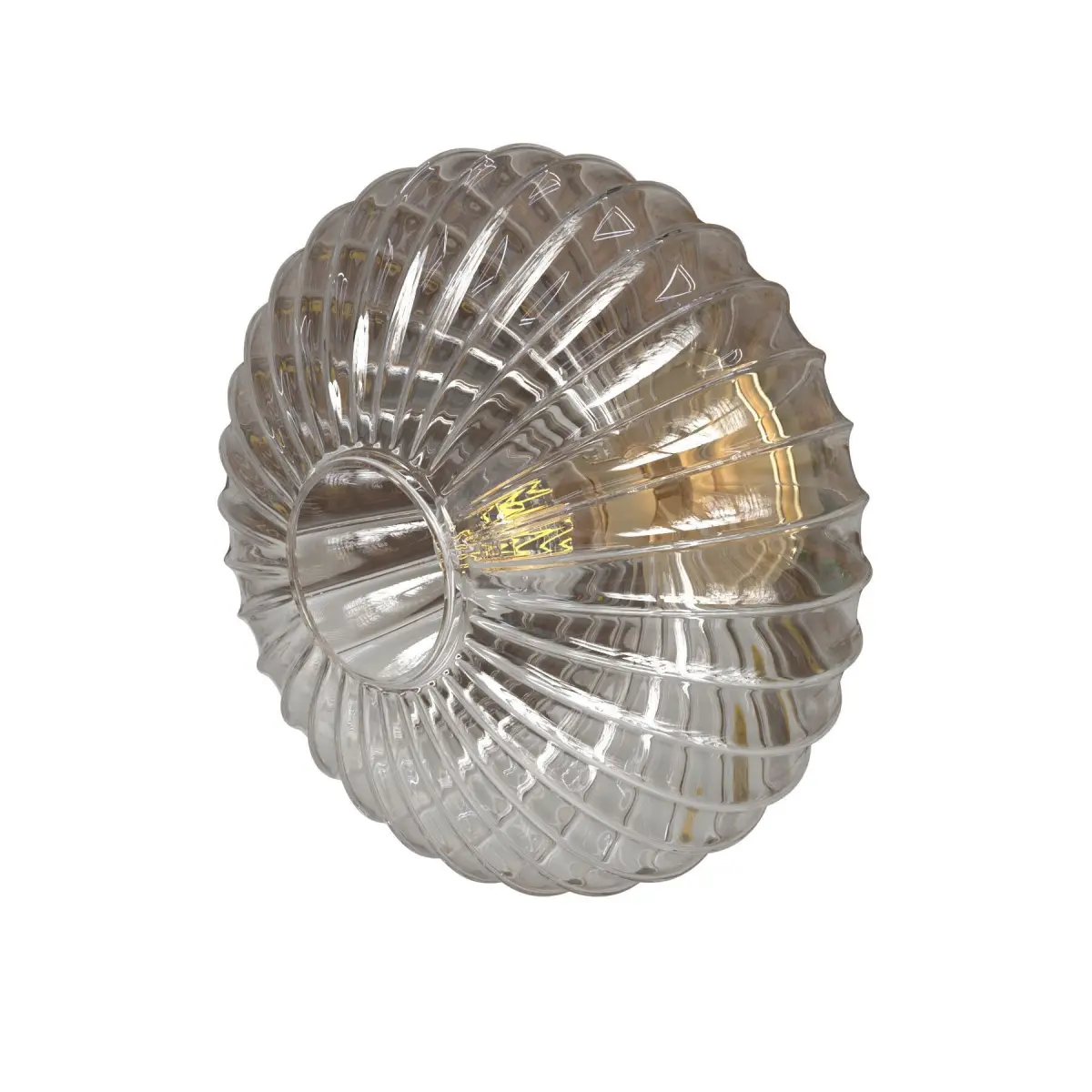 With its oval fluted glass shade and brass bracket, the Neith wall light is inspired by mid-century design to provide unique, warm lighting. The opening at the front of the shade allows easy bulb changing, while the light refracts through the glass to create captivating shadow effects.