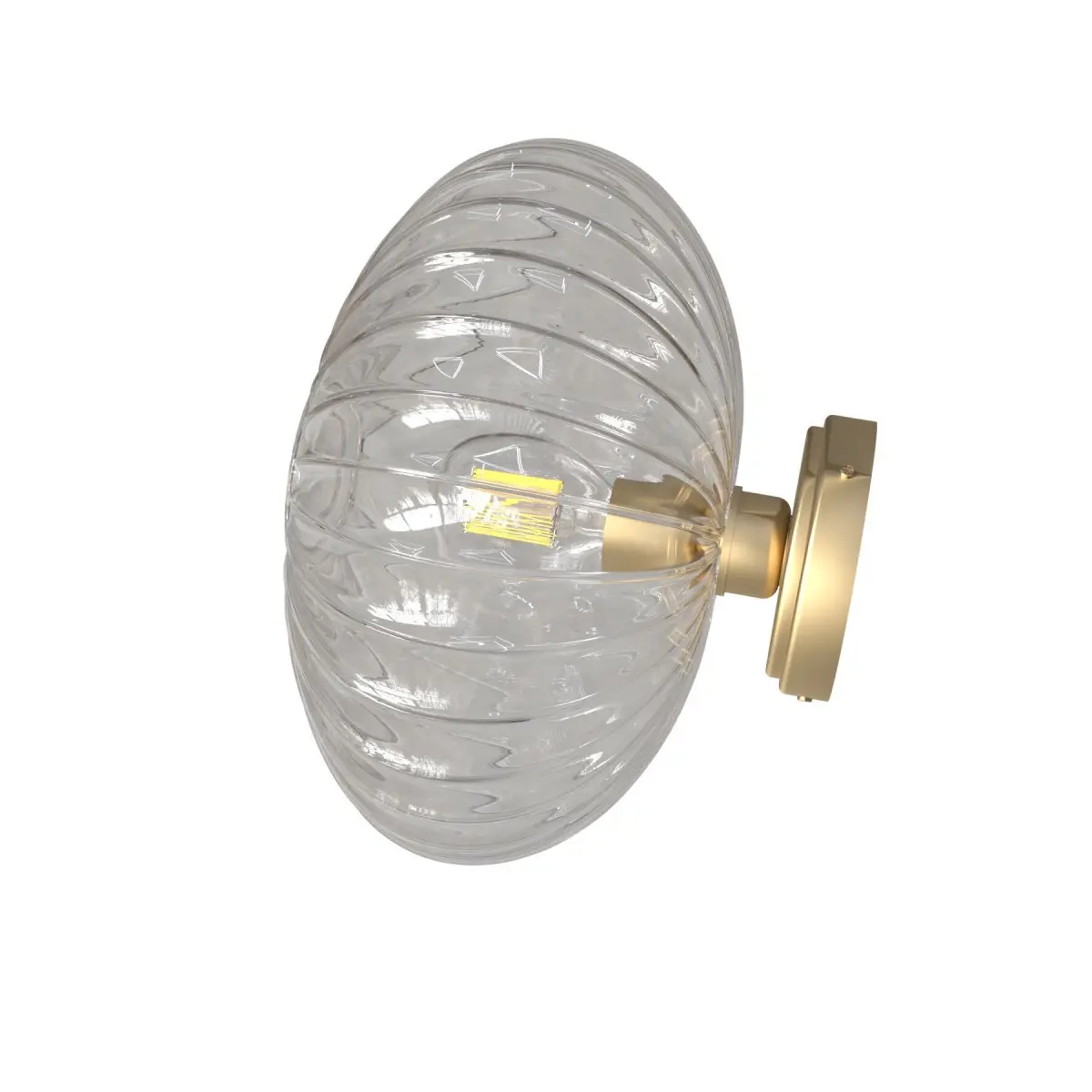 Wall lamp, Neith, transparent fluted glass, satin brass, Ø30cm, H30cm - Mullan Lighting
