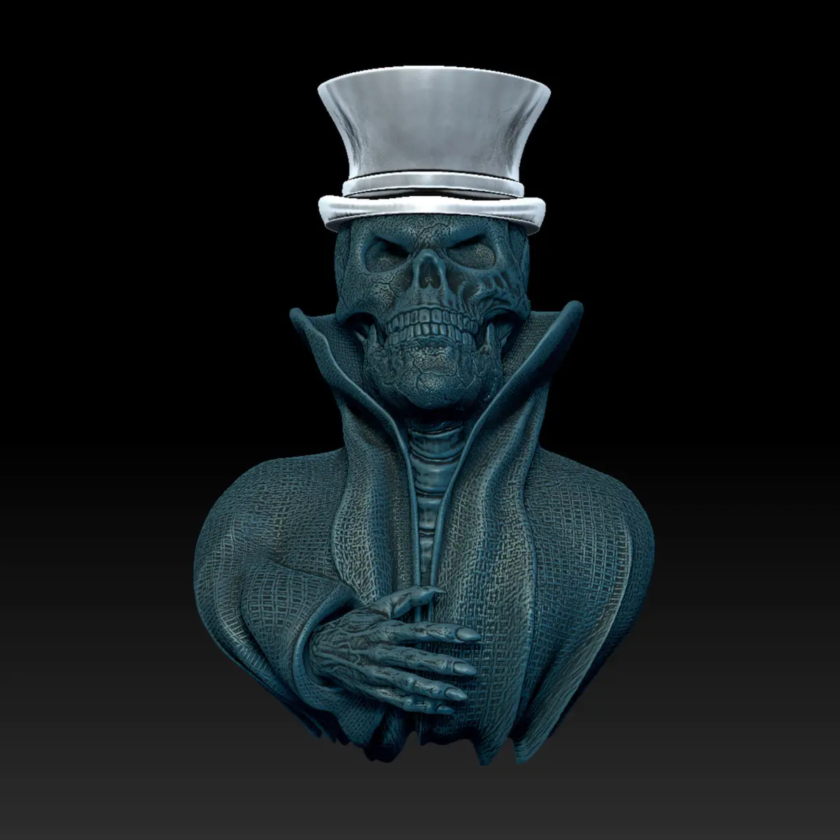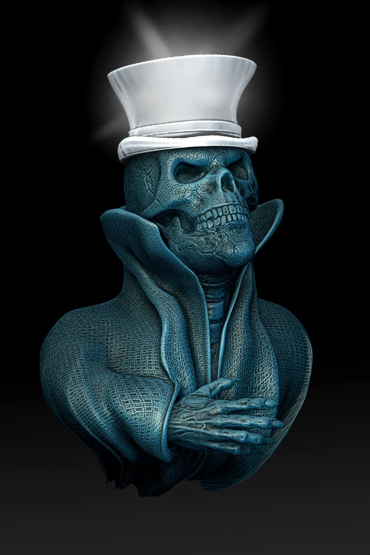 **Wall-Lamp Skull with a top hat as headgear and closed eyes top hat interchangeable with other topsCut (large format)with 3 hand sizes
