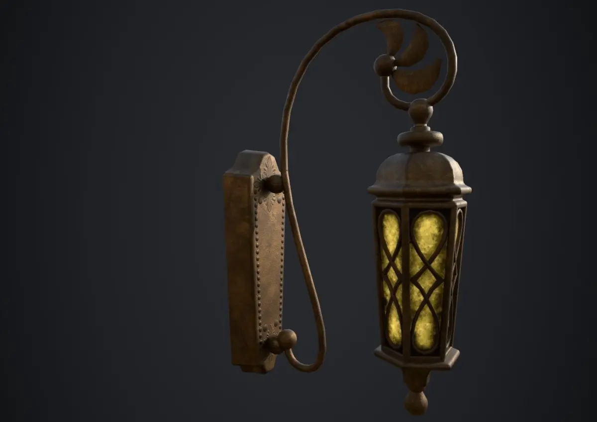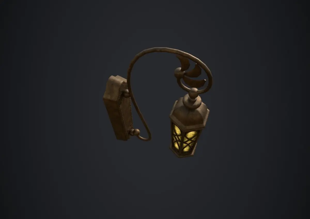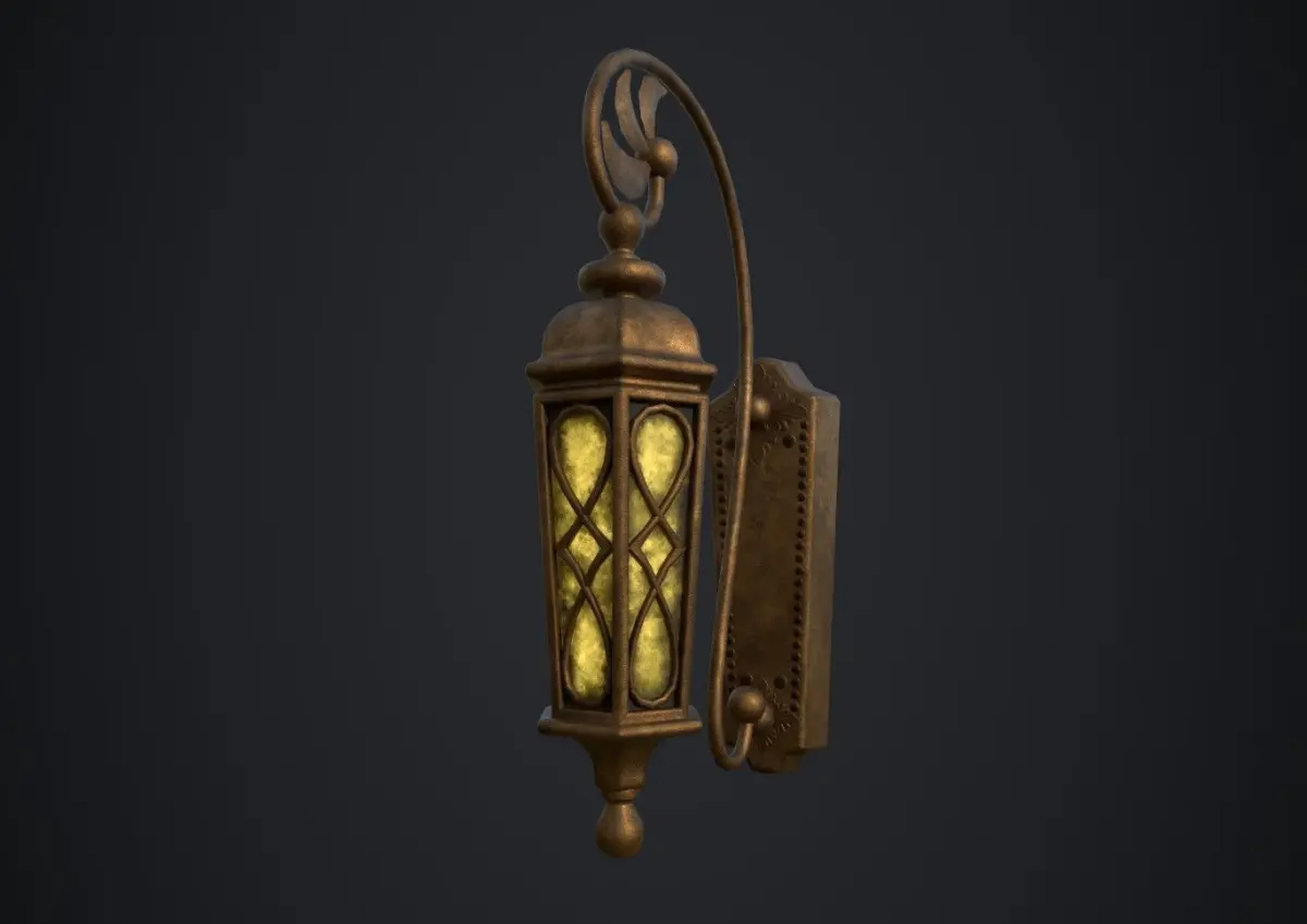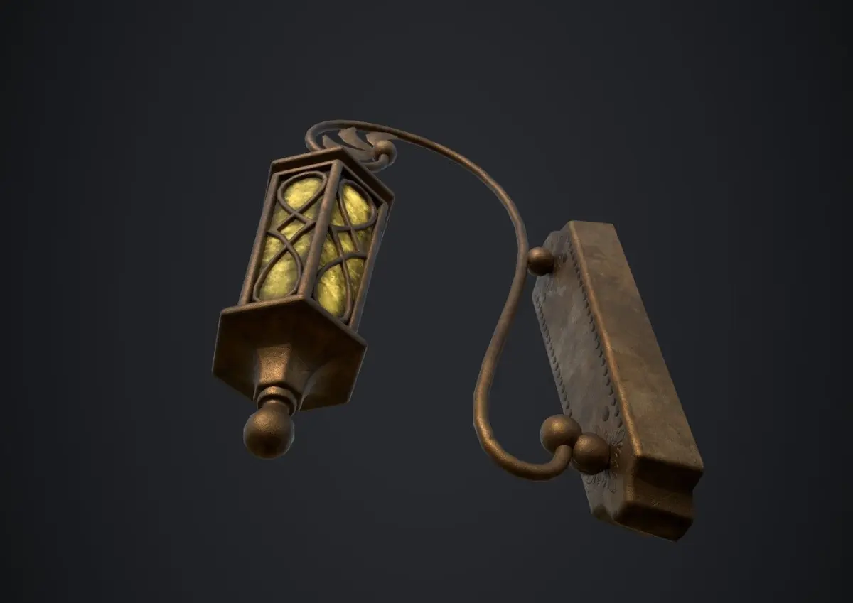 Wall Lamp with 3 textures and 3 LODs - The Quality you need for your Next Gen Game (AAA Game). Real world scale. PBR textures. The entire model was textured in Substance painter from real references.