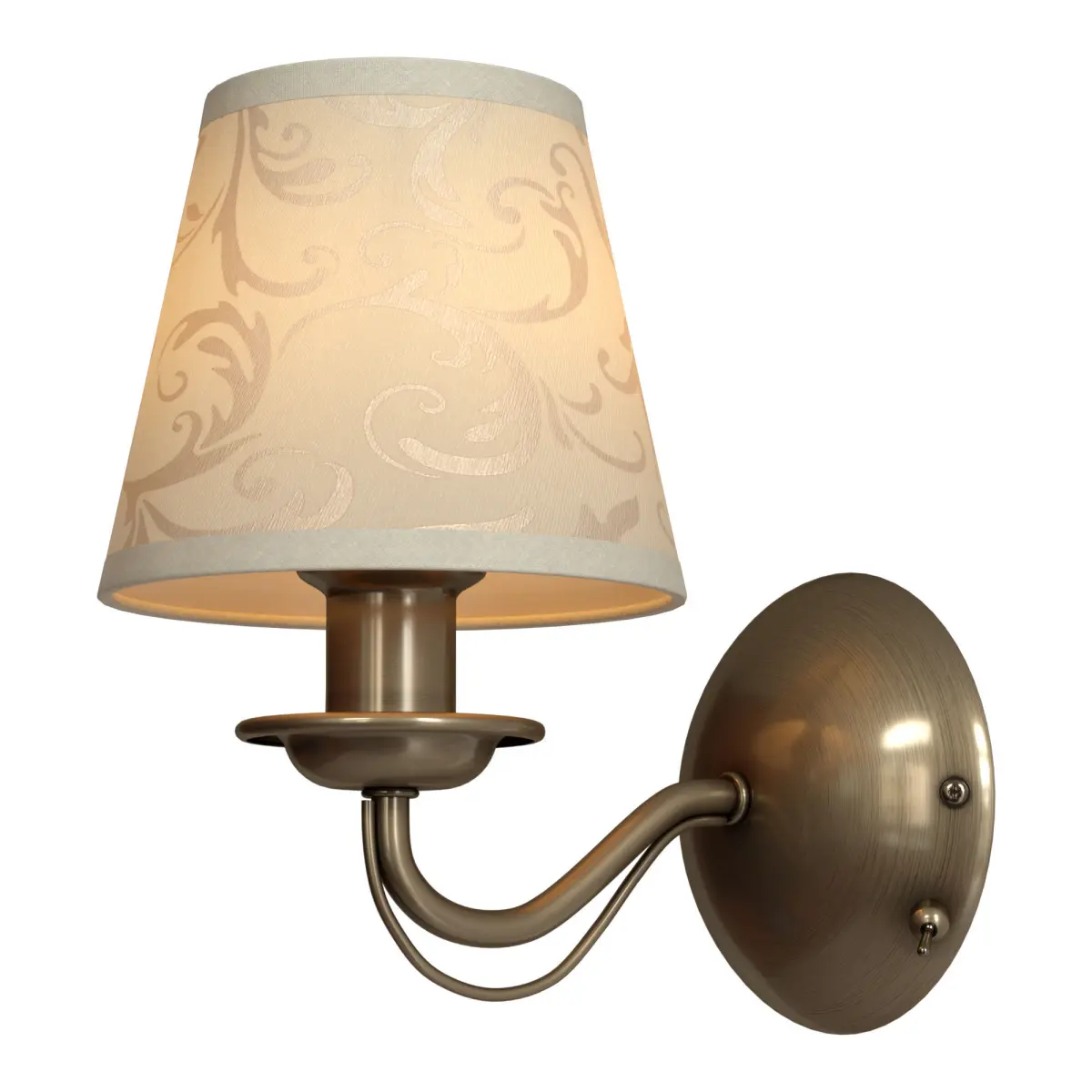 We offer sconces with a switch A9368AP-1AB from the Italian brand Artelamp. The frame is made of metal and goes well with the fabric shade. The model is made in the classic style and will perfectly fit into the atmosphere of similar trends.