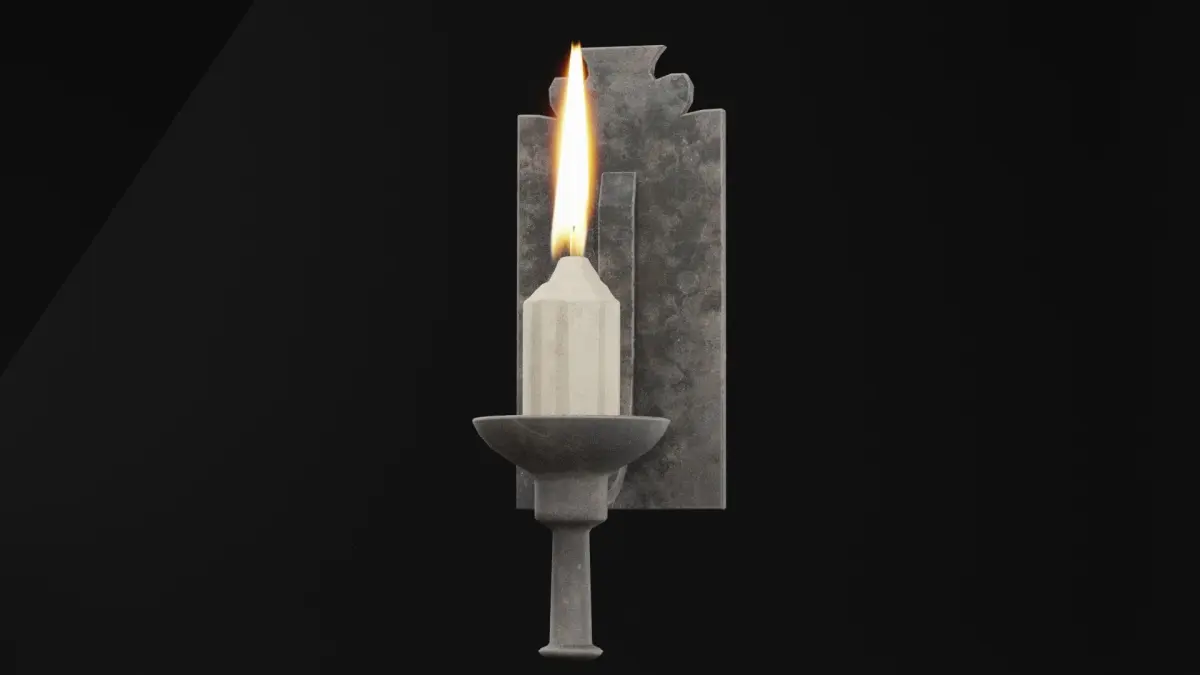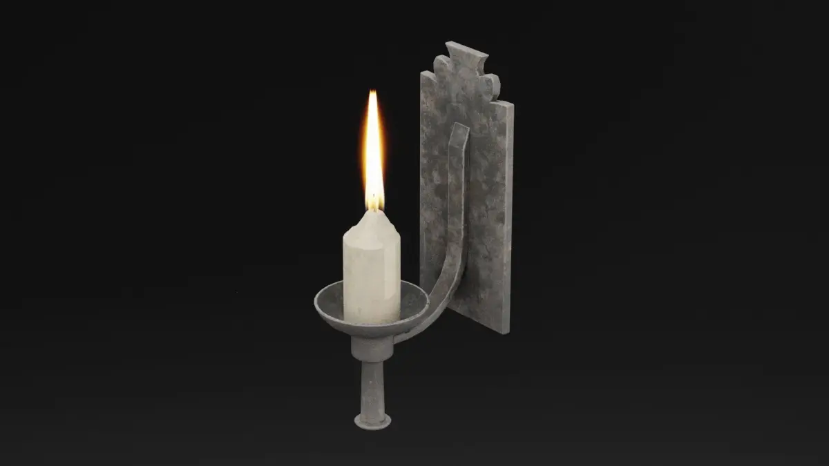 This 3D model depicts a Wall Light Candle, perfect for adding a vintage or gothic ambiance to any scene. The design features a wall-mounted sconce made of ornate metalwork, holding a realistic candle with detailed wax drips and a flickering flame effect. The model includes rich textures for the metallic base and realistic materials for the candle, enhancing its atmospheric appeal. Available in BLEND, OBJ, and DUF formats, this high-poly model is ideal for historical, fantasy, or interior design visualizations.