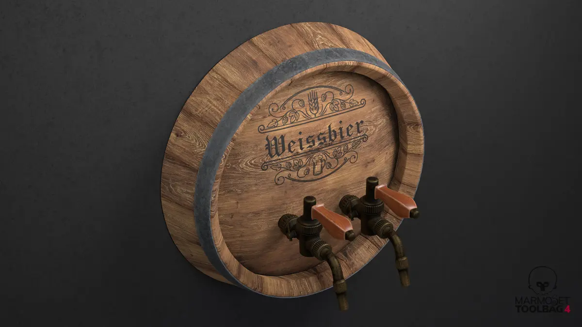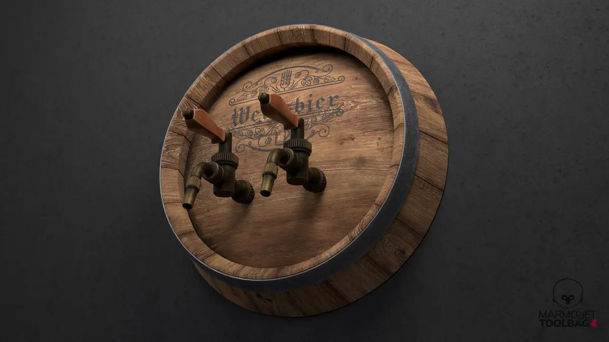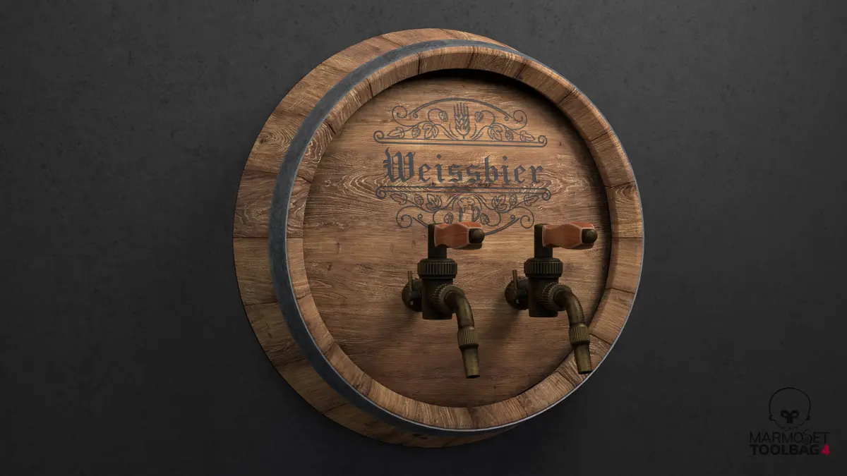 - Beer_Barrel - Diffuse, AO, Roughness, Metalness, Normal (2048x2048px, 5 beer logo variables)