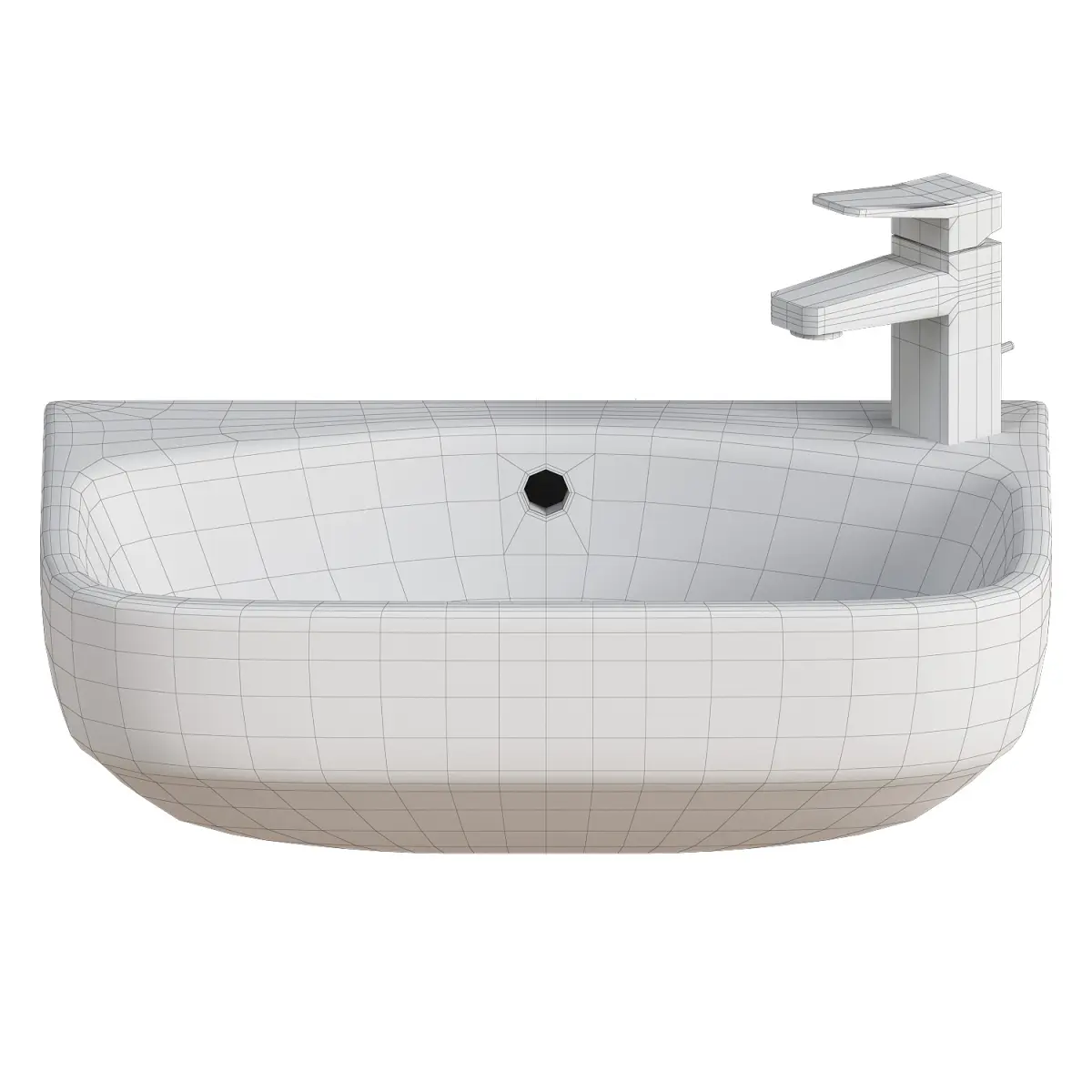 This modern wall-mounted ceramic bathroom sink features a compact, rectangular design with gently rounded edges, making it ideal for small or minimalist bathrooms. The glossy white ceramic surface provides a clean and timeless look, while the integrated chrome faucet adds a touch of sophistication. A central overflow hole ensures practicality and functionality. Perfect for modern homes, hotels, or commercial spaces, this model includes both the basin and single-hole faucet setup. Modeled to real-world scale, ideal for architectural visualization, interior design renders, or product showcase.