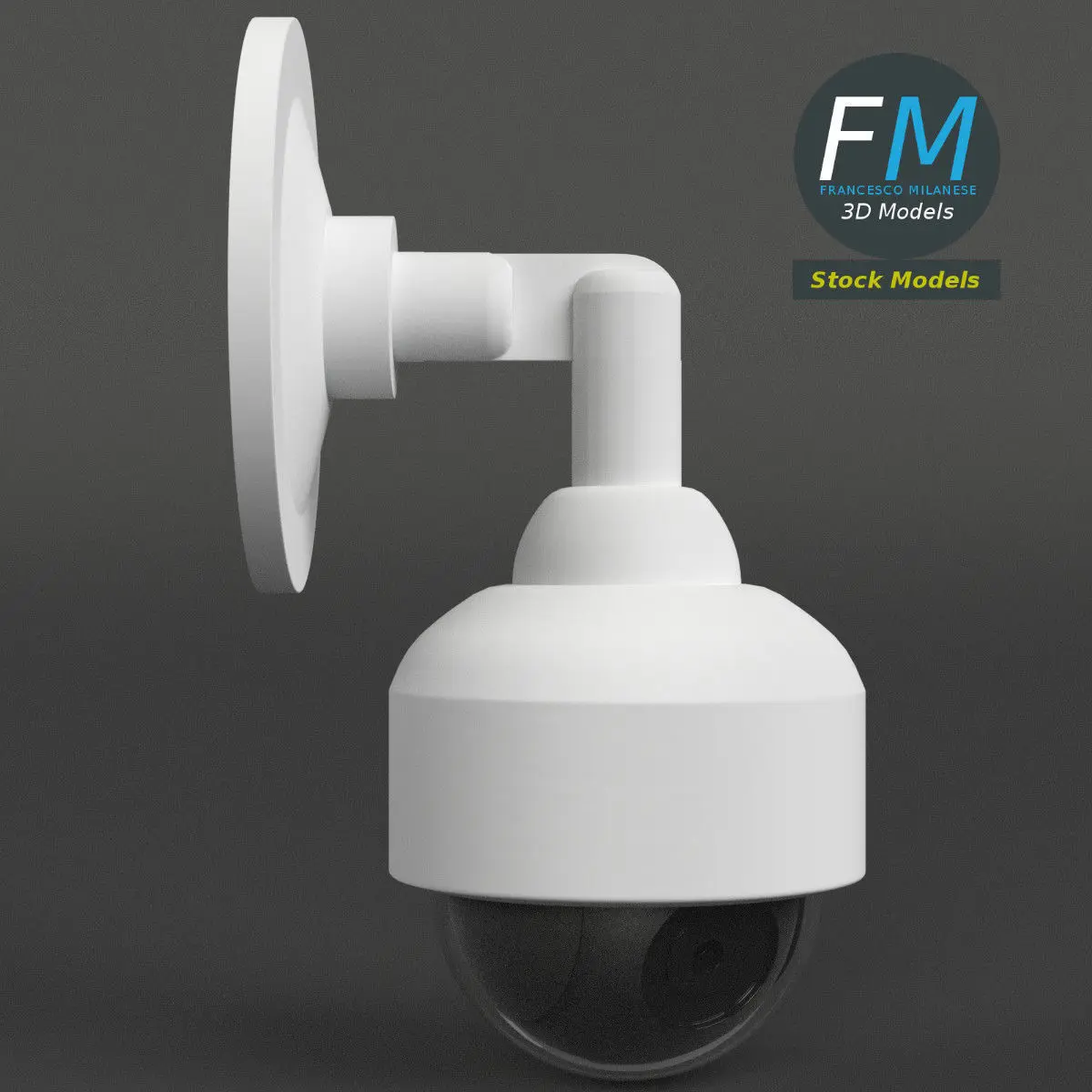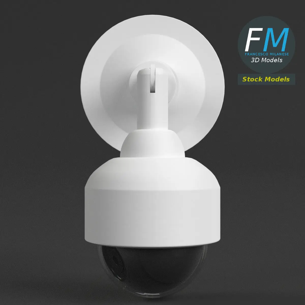 Wall mounted dome surveillance camera 3D Model. 4 individual objects (so you can rotate or even animate them), each one with its own non overlapping UV Layout map, Material and PBR Textures set. Production-ready 3D Model, with PBR materials, textures, non overlapping UV Layout map provided in the package.