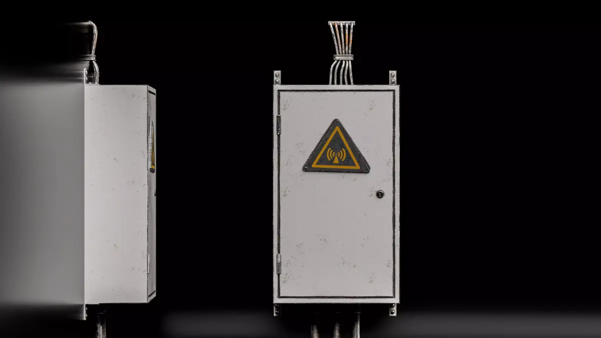 Highly detailed industrial electrical box 3D model designed for realistic environments and real-time applications.