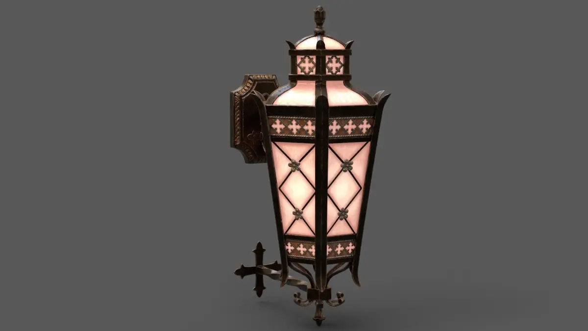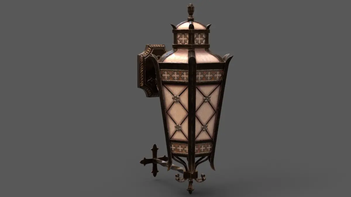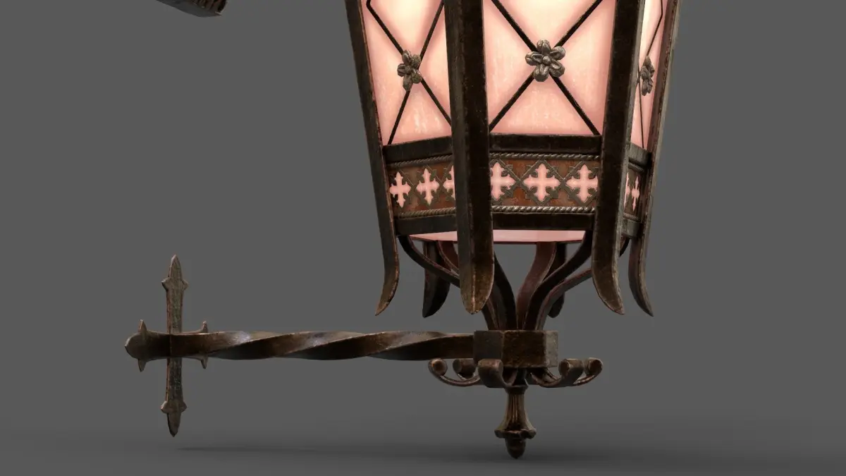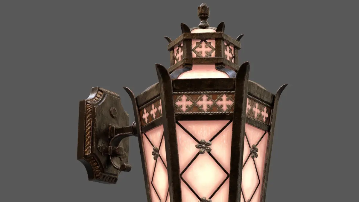Decorative wall-mounted lantern using PBR textures: