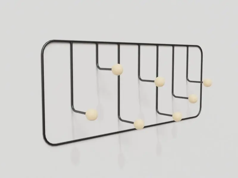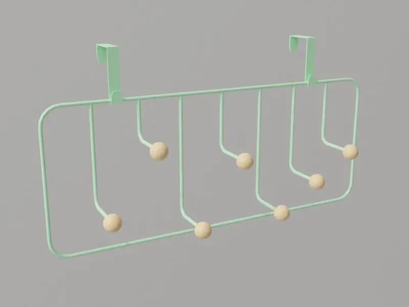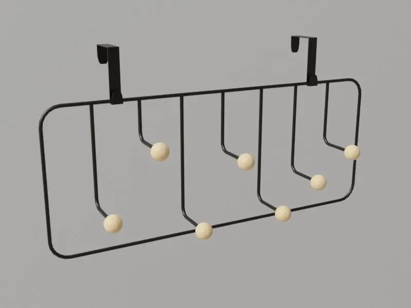 Interior metal colored hanger with wooden balls. Can be hung on doors or vithout upper hangers can be placed on wall.