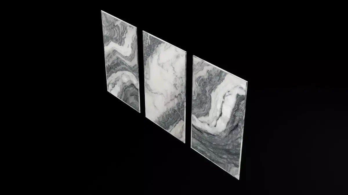 This is a high-quality 3D model of a wall-mounted 3-piece painting decor (triptych), perfect for interior design visualizations, virtual staging, art gallery scenes, or architectural renders.
