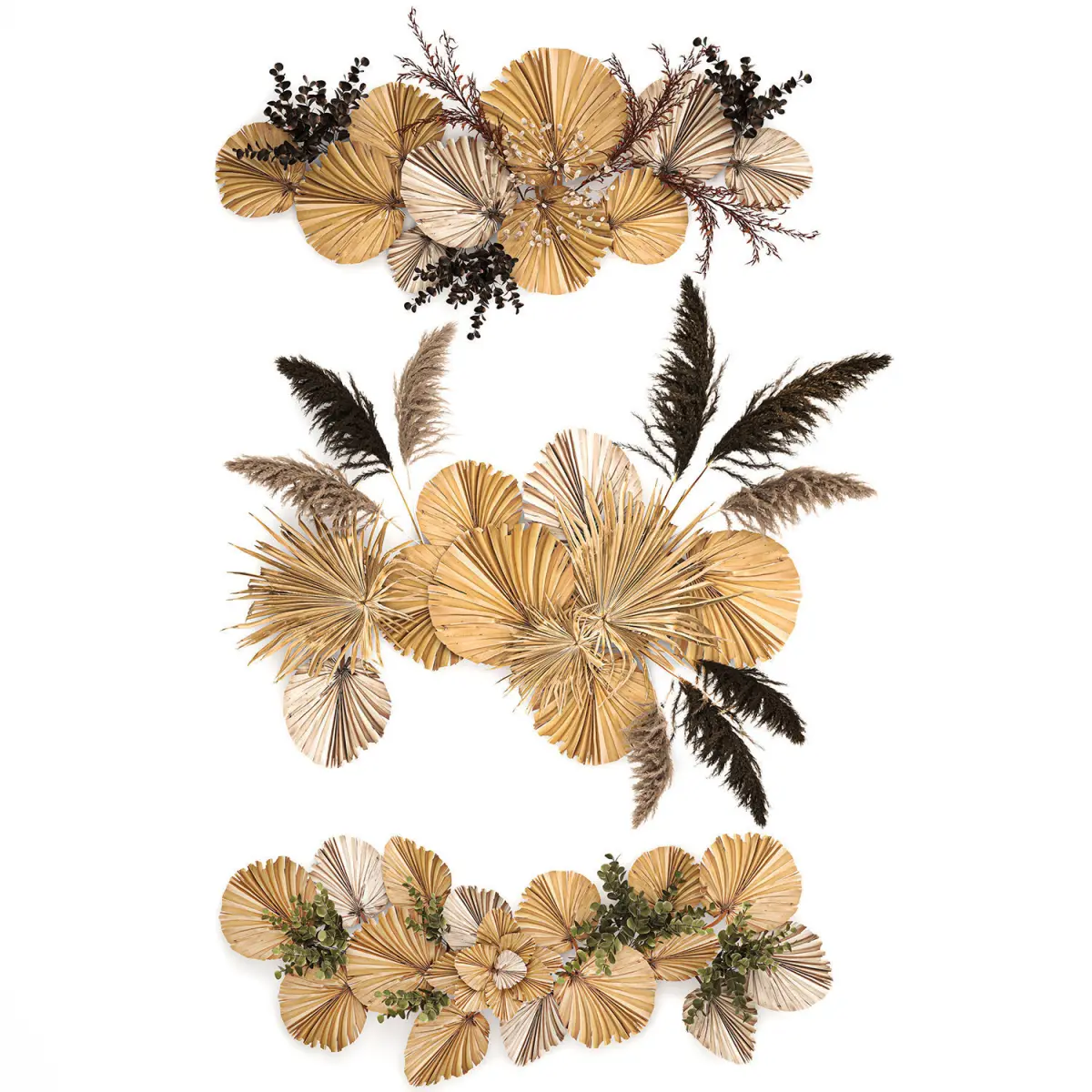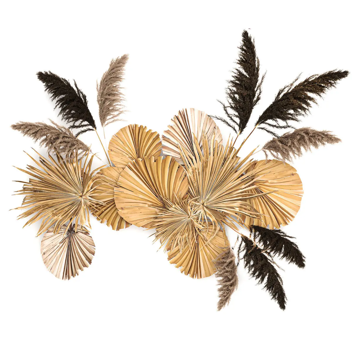 Vertical garden of dried flowers, phytowall. Wall panel made of dried flowers. Decorative panel from dry palm leaves for decor and interior. Wall installation from natural decor, eco decor. Decoration from natural materials for walls.A bouquet of dried flowers. Dried flowers, dry grass. Painting of dried flowers, wall decorations. Dry, stabilized, coloreddry palm leaf, palm leafDry twigs, dry twigs, dried flowers.Installation of dried flowers for walls, hanging composition from palm leaves.Cortaderia, pampas, pampas grass. Dry reeds