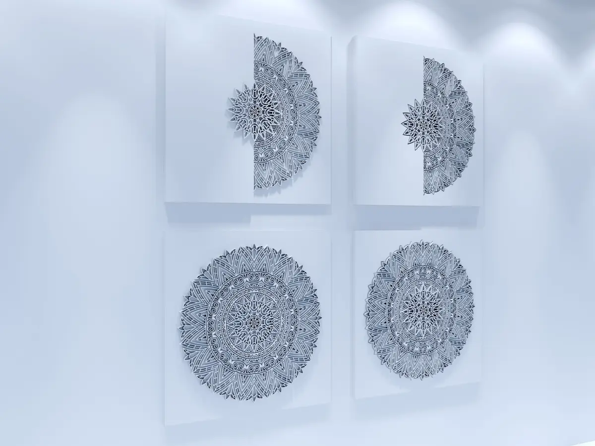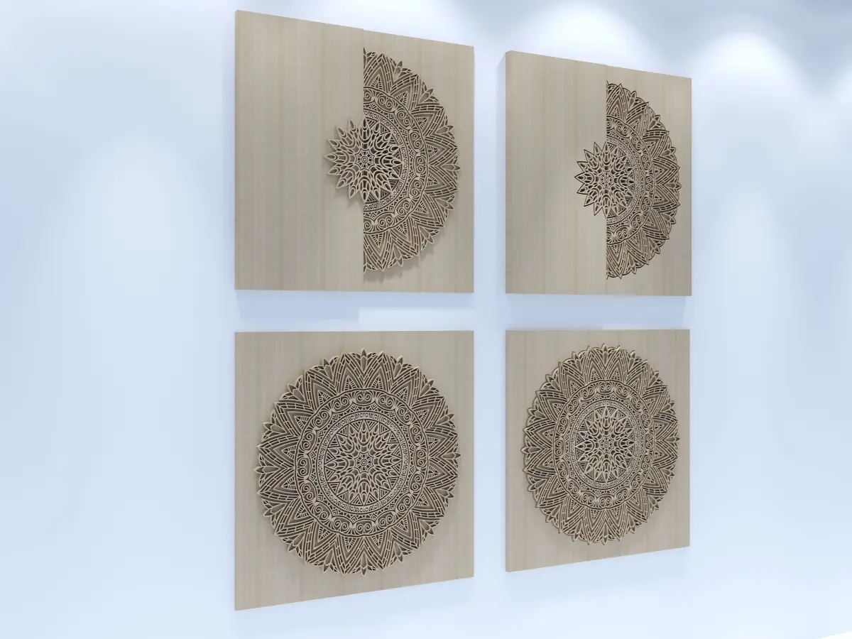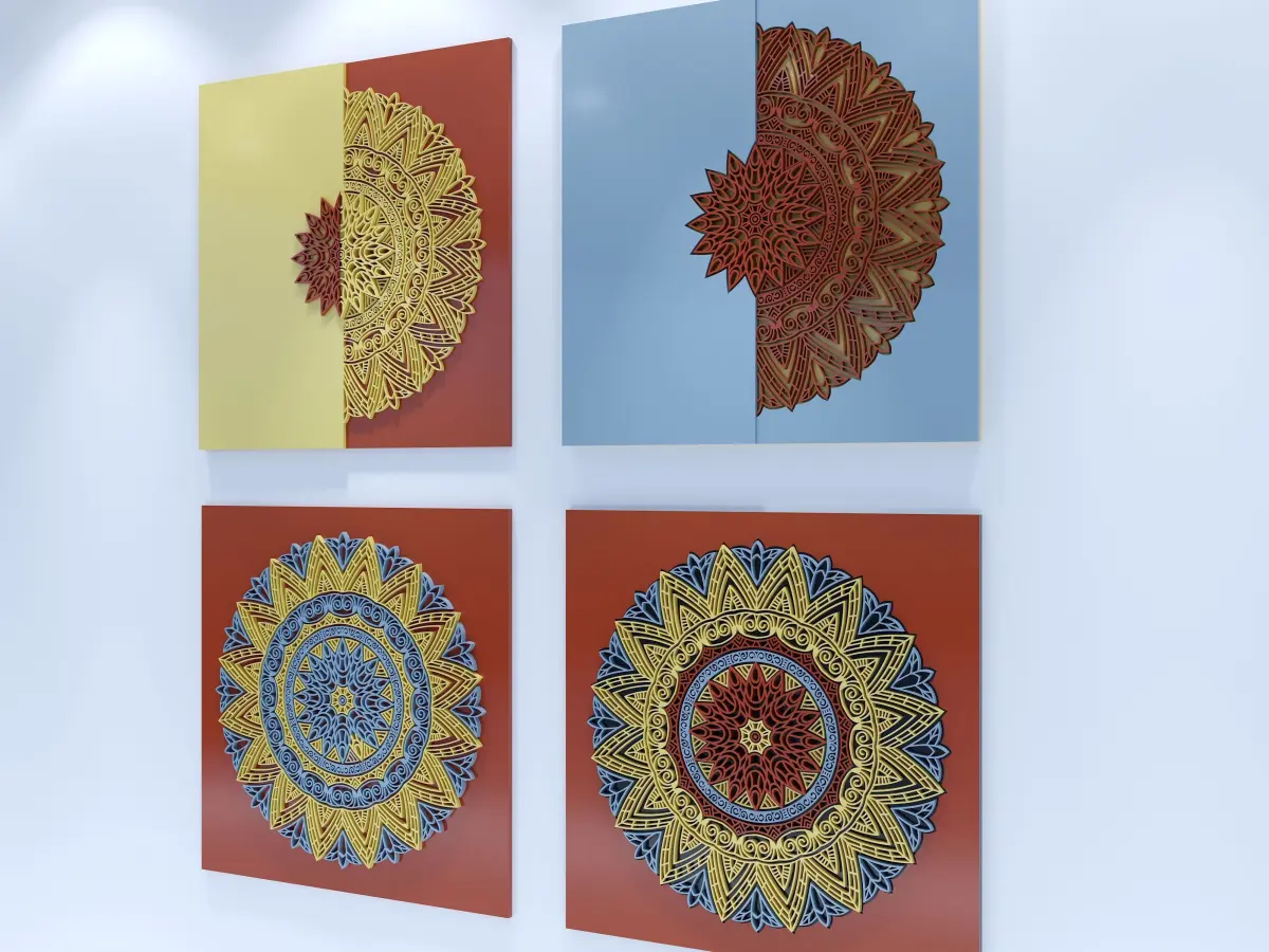 Panel ornament decor for wall.Four panels is similar.The raw version of the model is in the rar file. modeled splines are prepared as instances and it is easy to make changesobj file doesn't have a rendering scene , only wall decor ornament models.The dimensions of each rectangle where theornament is: 90cm x 90cm