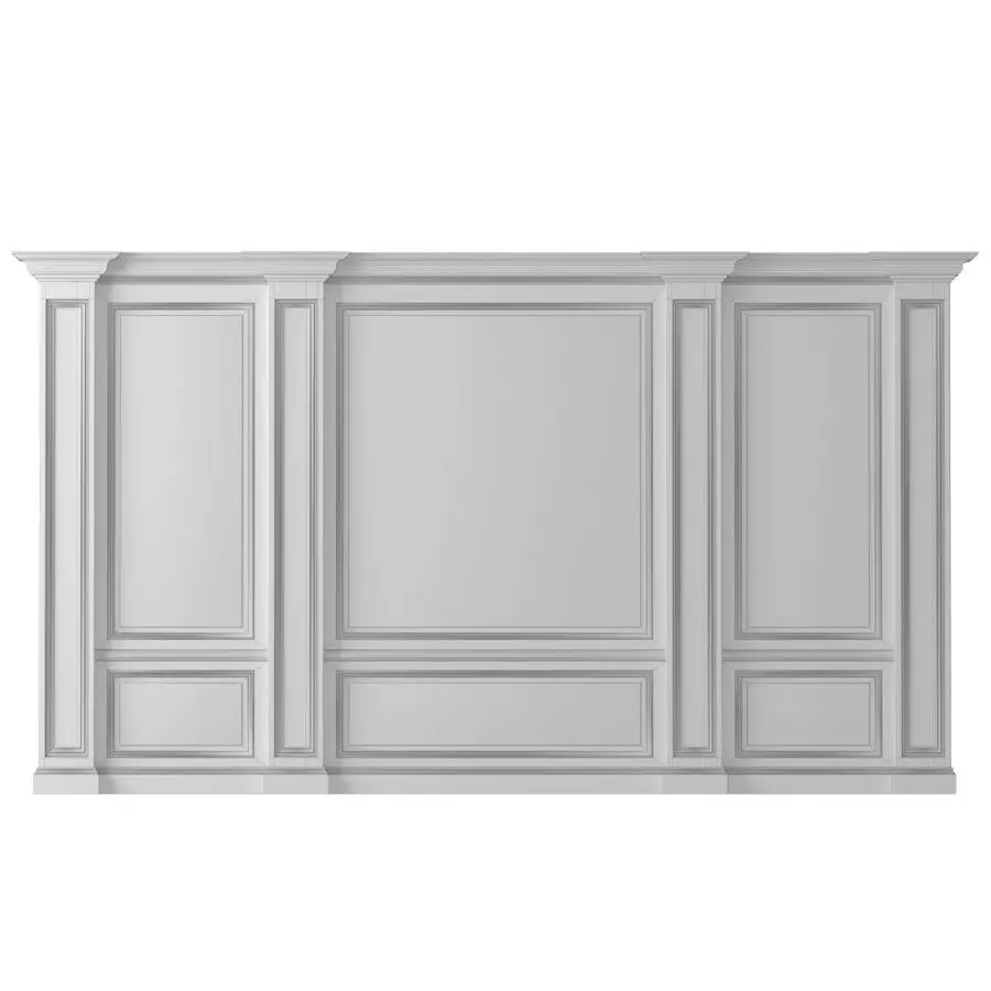 Classic gypsum (wood) wall panel with gilded capitals and classic textile wallpaper (tapestry) with the effect of a velvety mother-of-pearl surface.