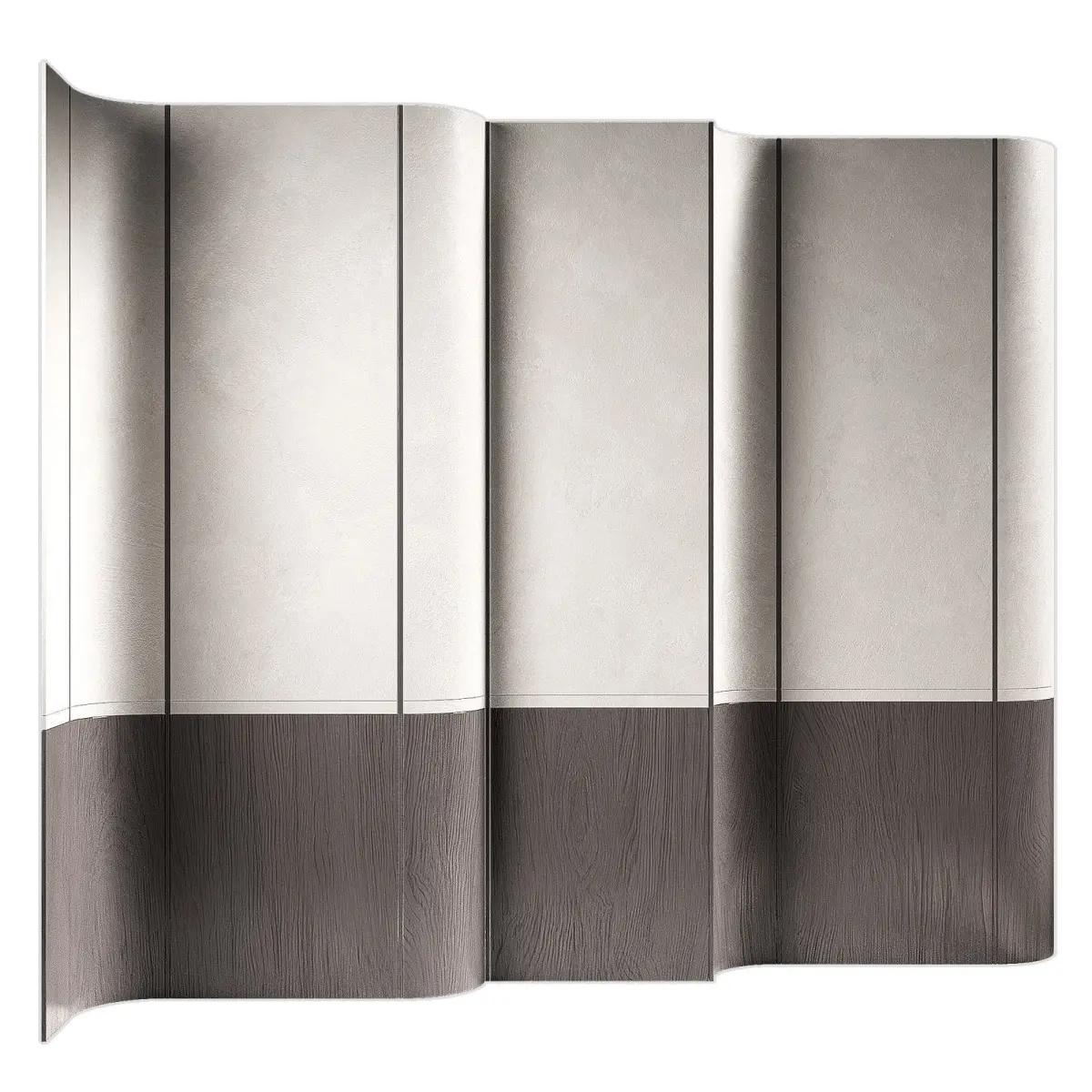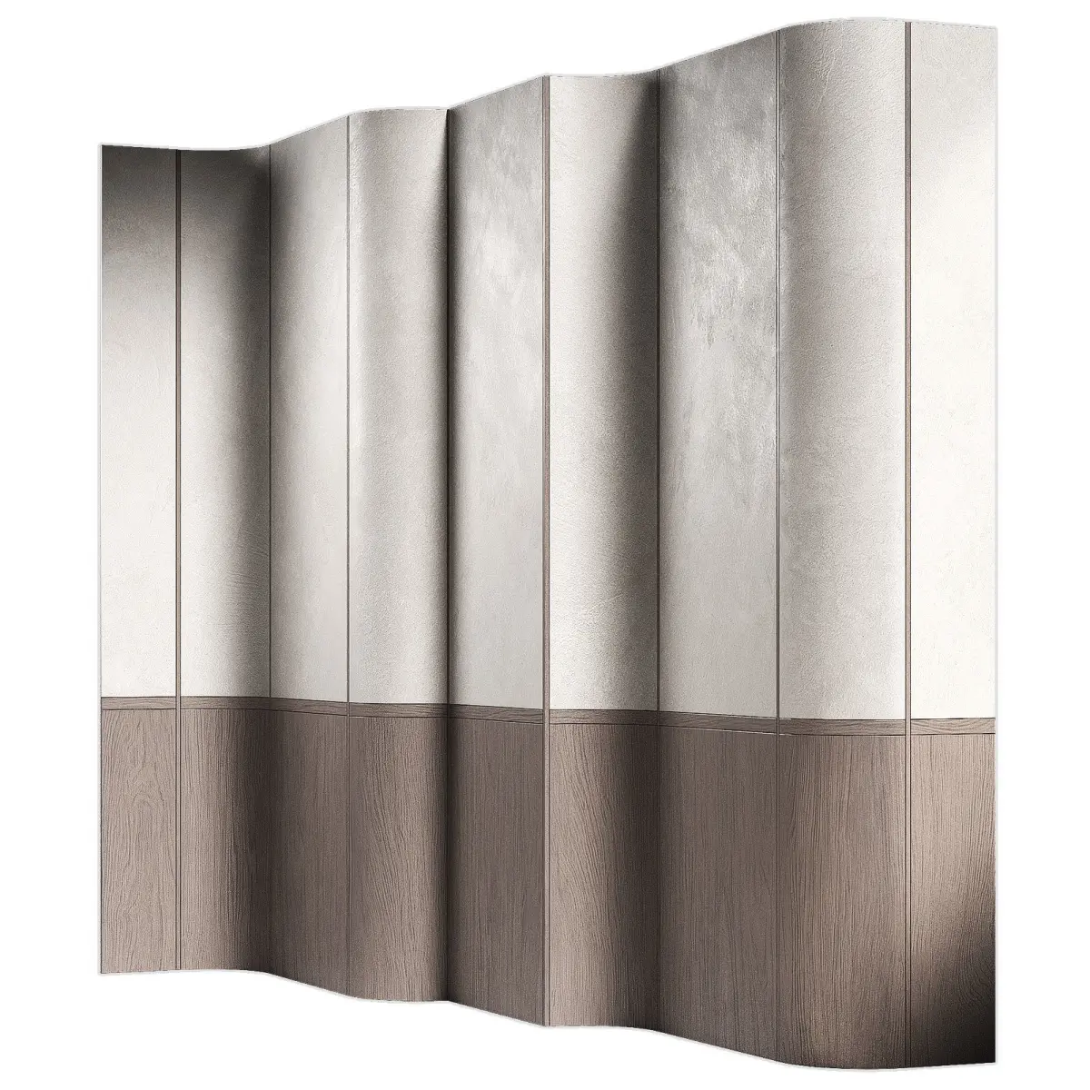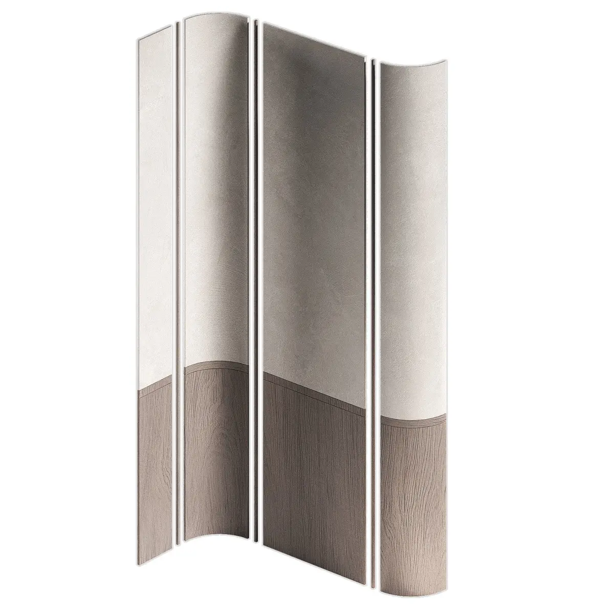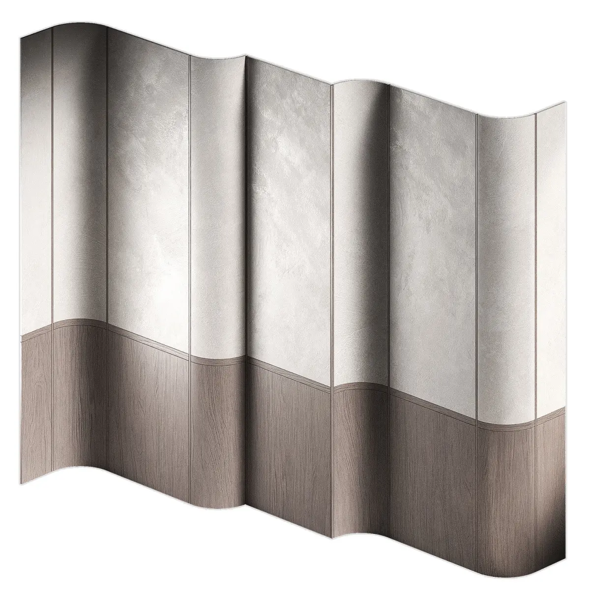 The 3D model contains thin straight and corner wall panels. Radius round external and internal corner. Can be used as decorative cladding on walls, furniture and cabinet frontsThe model is easy to edit to the desired size - each section is separate. The composition is completely modular.2 wood color options are present in the scene.It is easy to adjust and change the color of the plaster and wood material to any other through the color map.