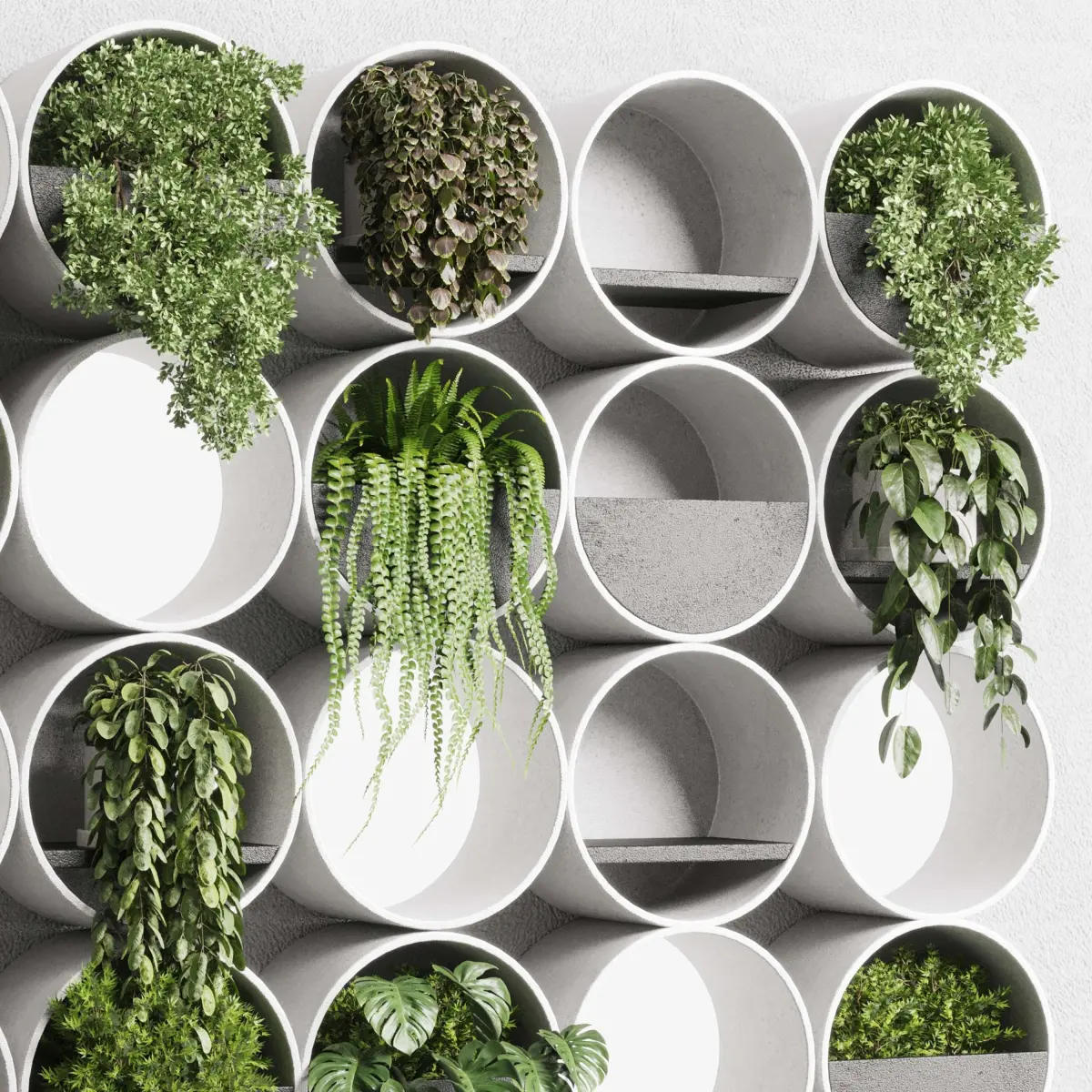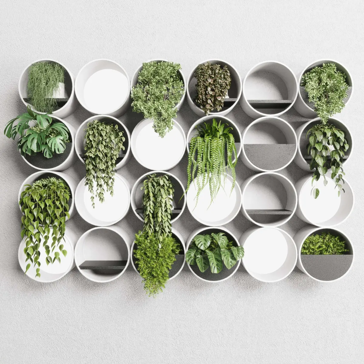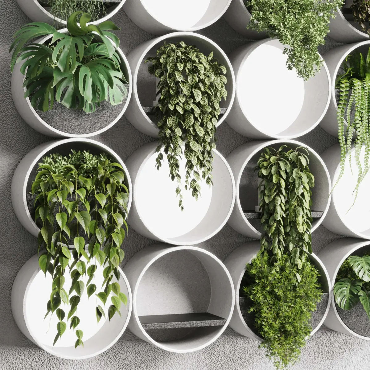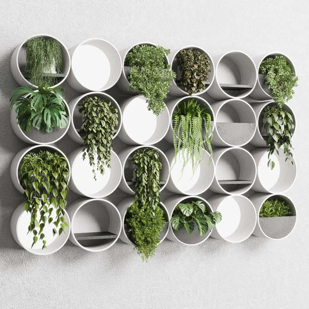wall plant - set Indoor plant 34 concrete wall vase and frame circle concreteFile 3dmax 2015 corona vray