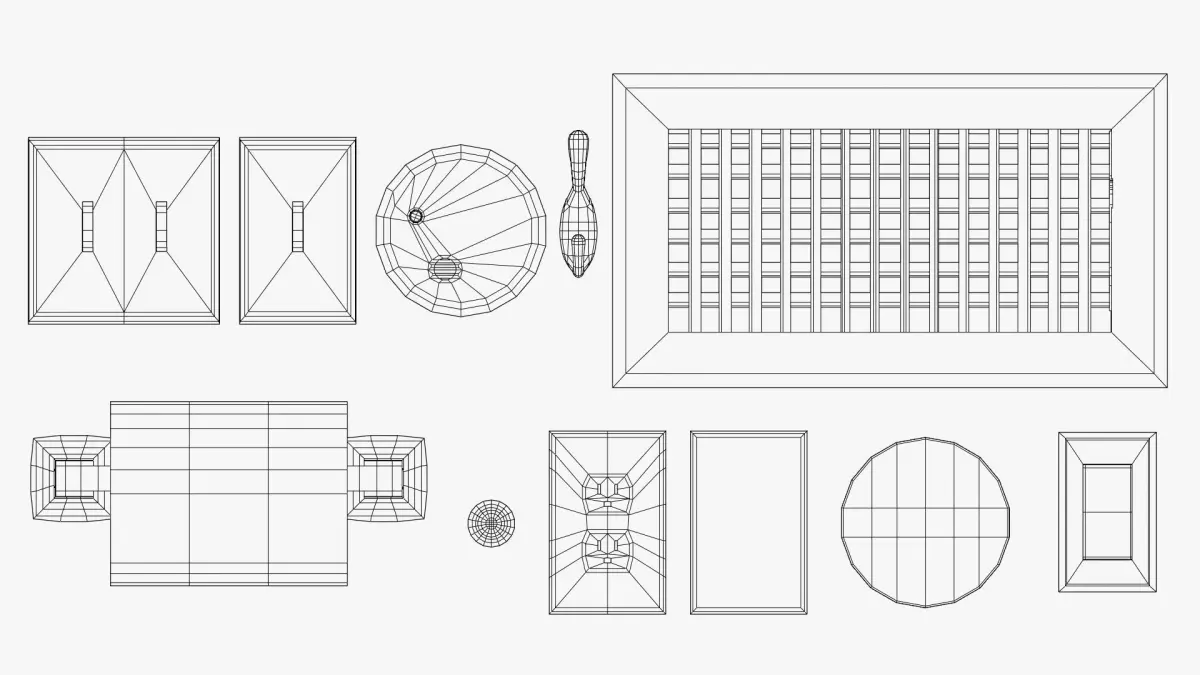 This is for a unique wall prop/detail set that would be perfect for a home or office setting. All items are cleanly UVed with low topology and high-rez textures, making them perfect for animation or games.