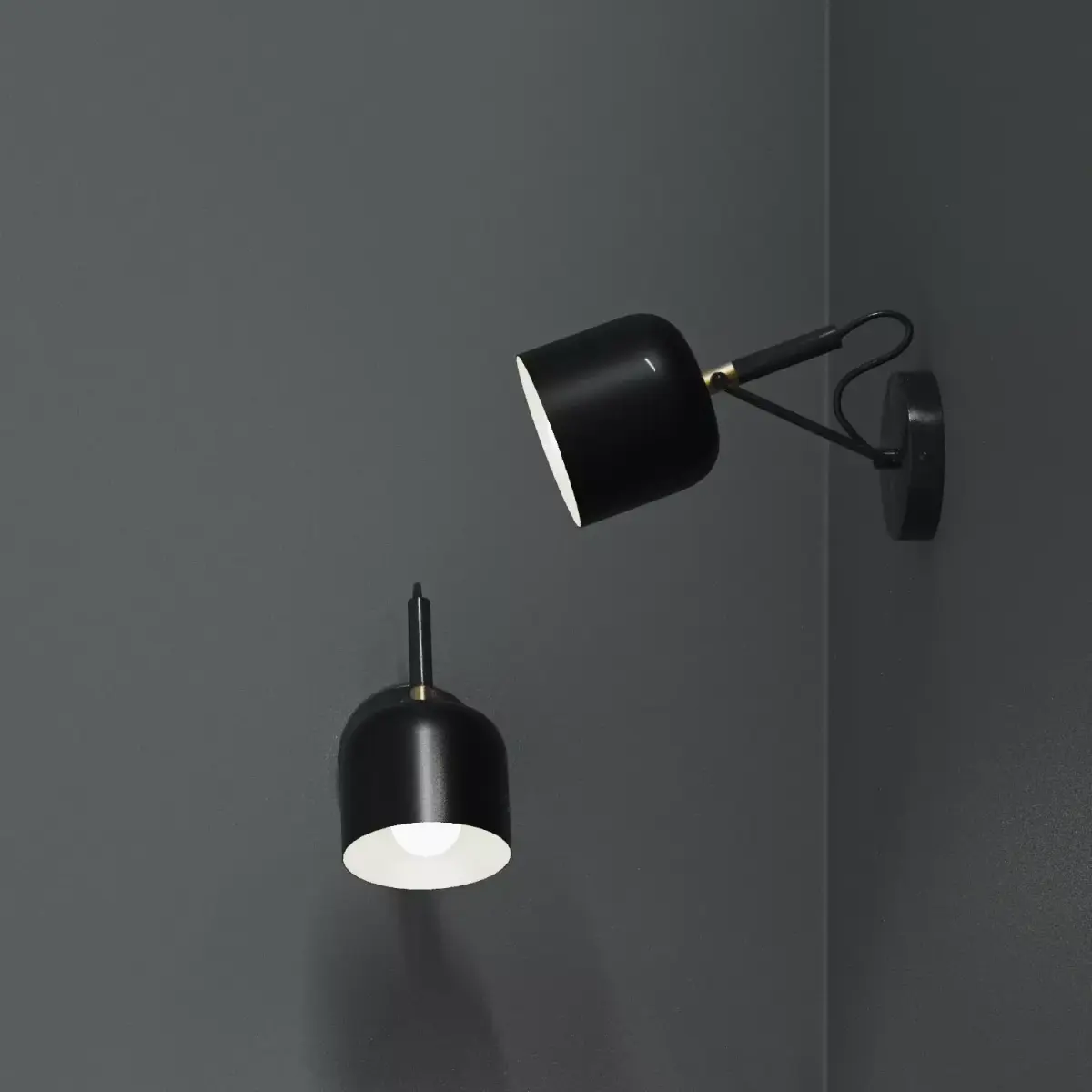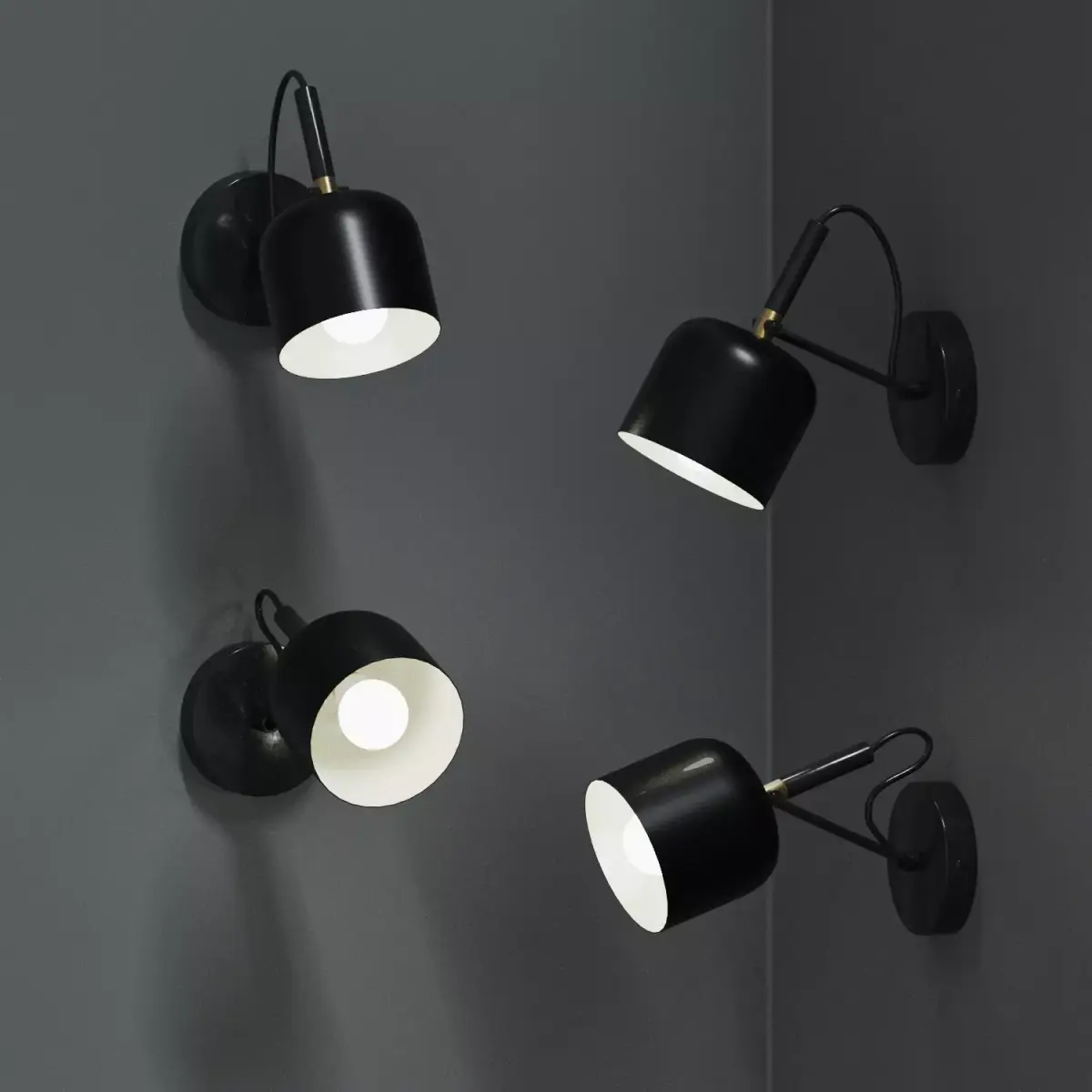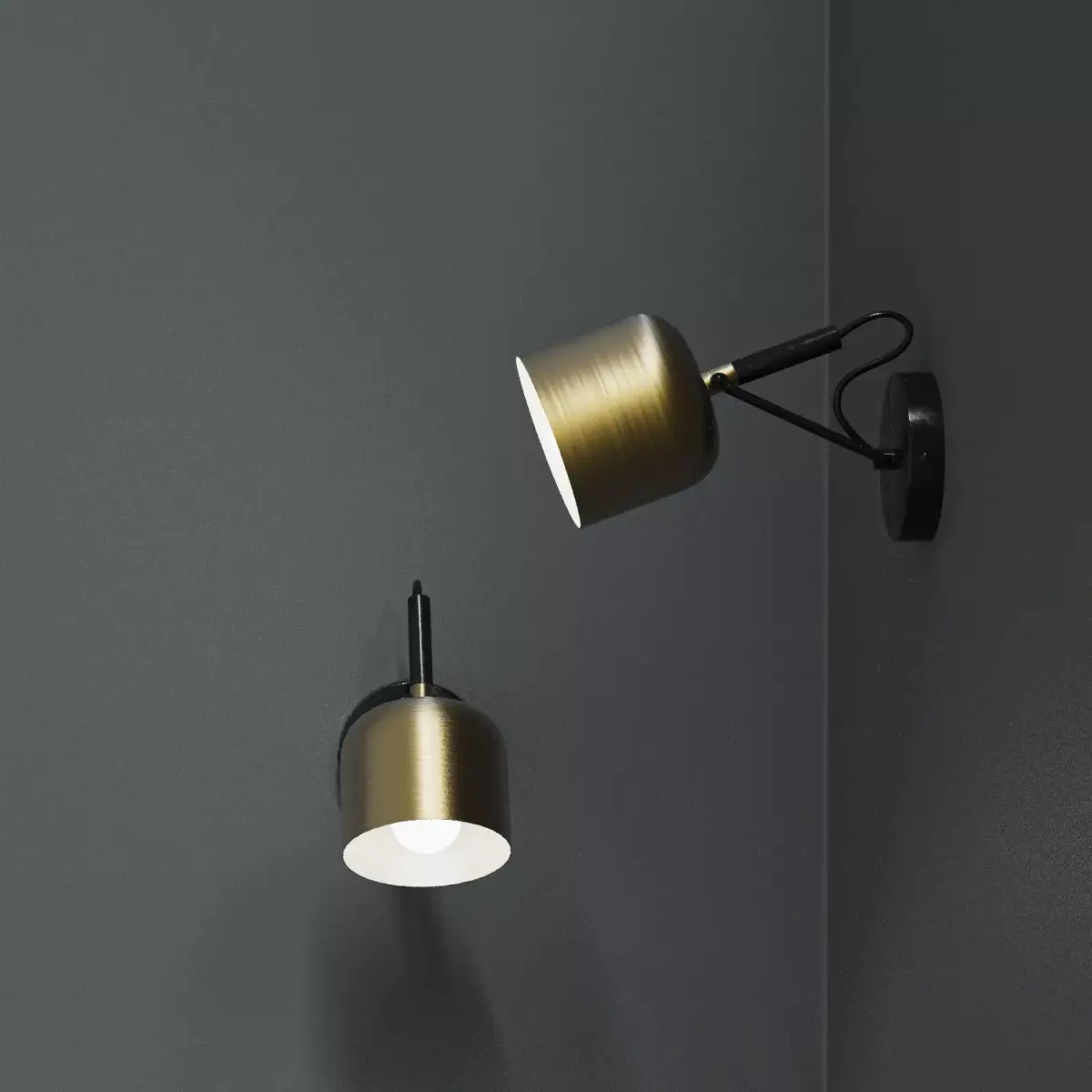 Available in white, gold, and black. Each finish comes in two orientations/positions. Inspired by a popular design. The fixture uses an LED bulb.