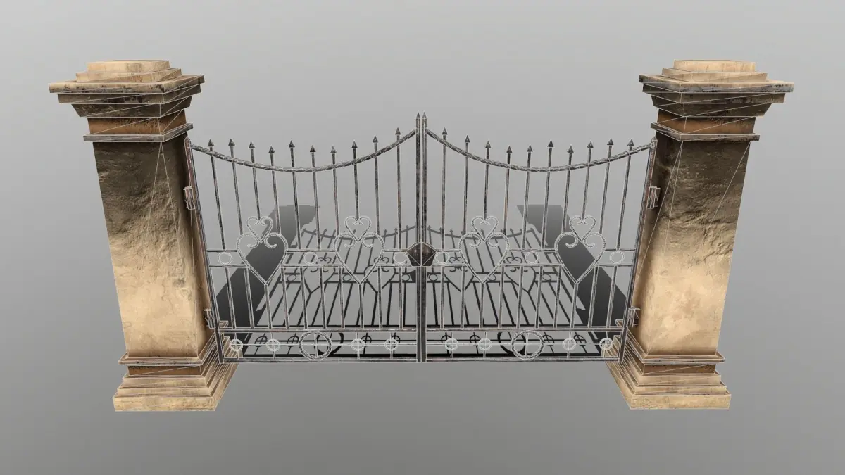 Gate..........................6980 polygon. .................... 3856 vertices.Wall_01.......................1592 polygon. .................... 982 vertices.Wall_02.......................1992 polygon. .................... 1190 vertices.Wall_03.......................1040 polygon. .................... 777 vertices. Wall_04.......................640 polygon. .................... 569 vertices.