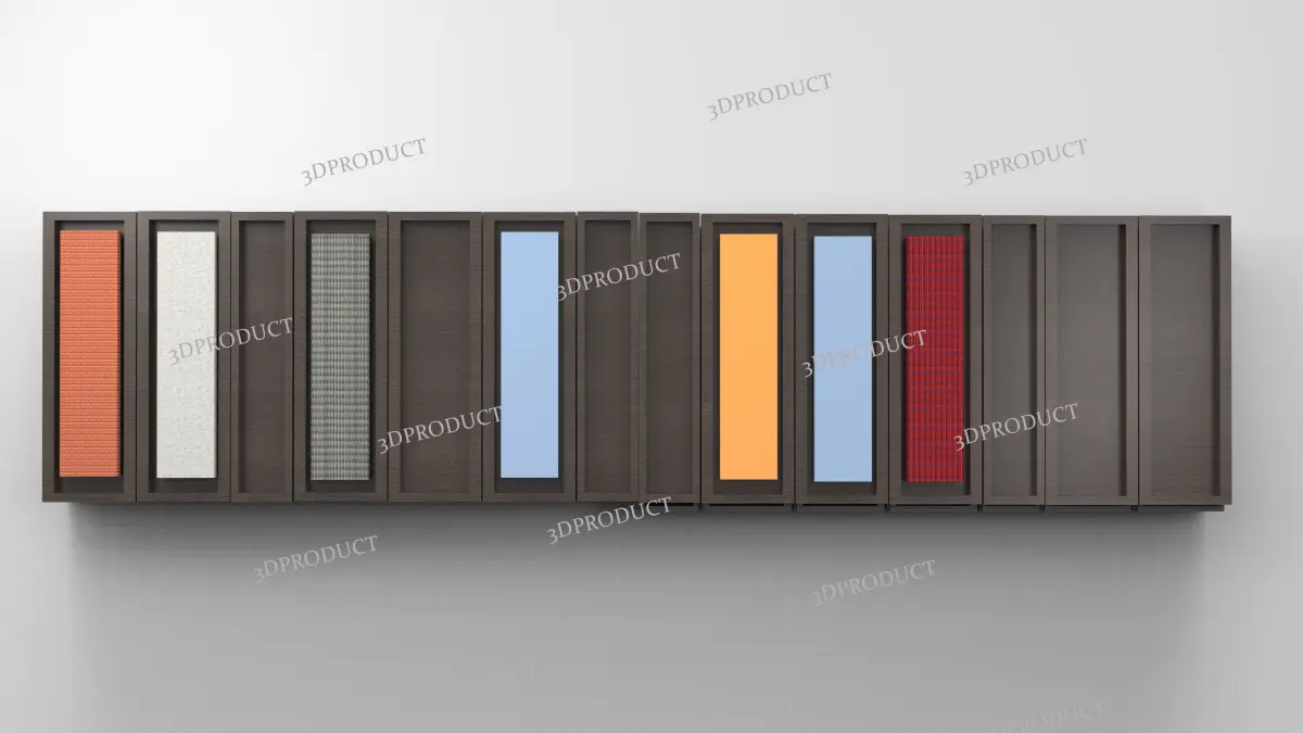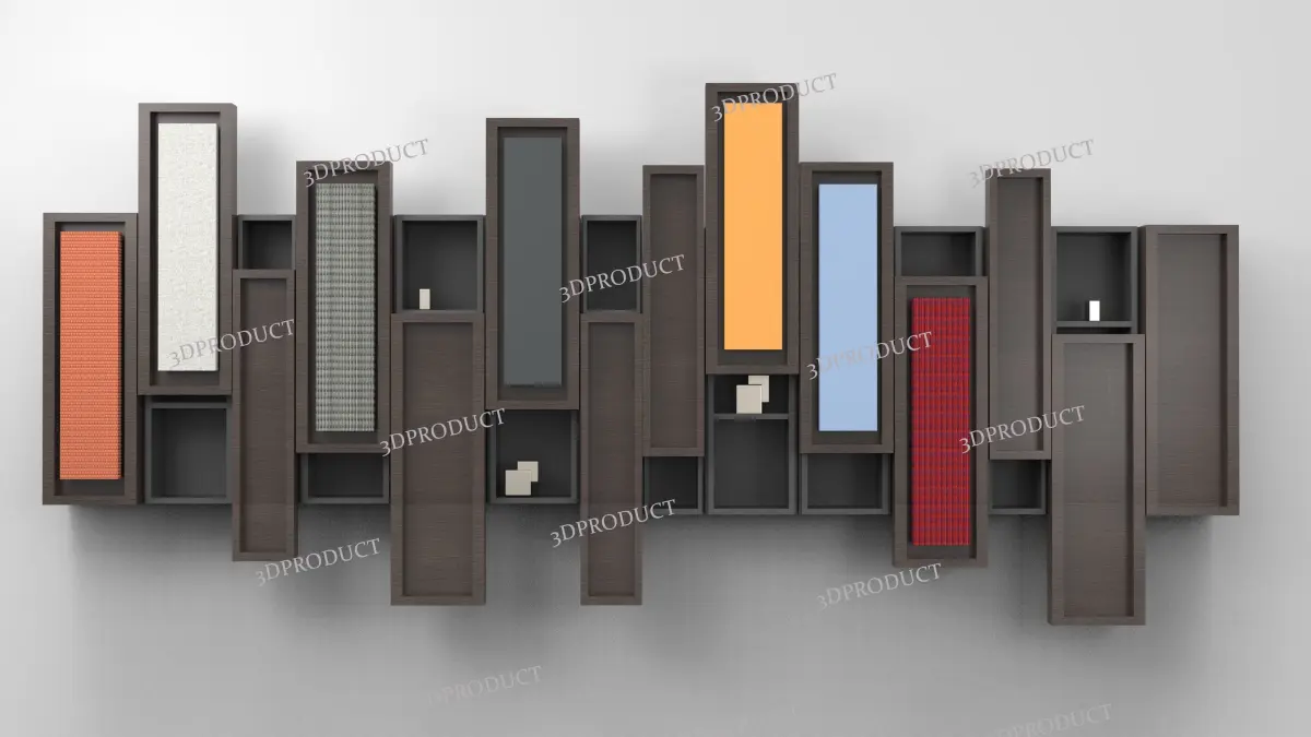 The unit acts as a sliding shelf hung on the wall, the color representation you see in the picture is supposed to be a place for fabric to be hung, however when if its not needed it simply acts as a sliding door!The product is modeled in real dimensions, in solidworks 2022, and rendered in keyshot with real materials to be used. I have attached the files including the scenes and textures used. Finally when it's all set up, it shows a dynamic design which interactive and aesthitcally pleasing for the eye.