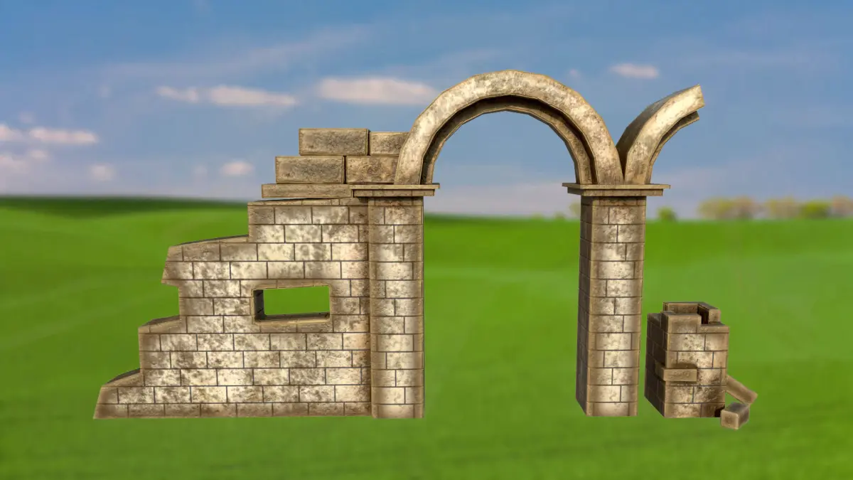 Wall stone arches destroyed PBR low-poly 3D modelPolygons 1976Vertices 2104