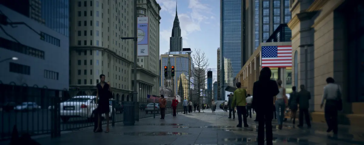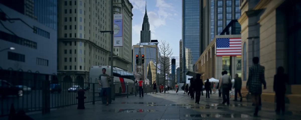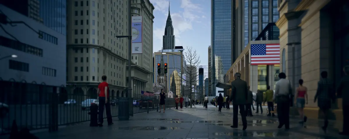 Wall Street is a large street in the southern part of Manhattan, New York City that extends from Broadway Road to the East River. The total length is only one-third of a mile and the width is only 11 meters. The streets are narrow and short, with only 7 sections from Broadway to the East River, but they are known as the financial center of America around the world. The management offices of banks, insurance, shipping, railways, and other companies established by the Rothschild, Morgan, Rockefeller Oil, Goldman Sachs, and DuPont consortia in the United States are concentrated here. The famous New York Stock Exchange is also here and remains the headquarters of several major exchanges, such as NASDAQ, the American Stock Exchange, and the New York Futures Exchange. The term Wall Street has now surpassed this street itself, becoming a synonym for nearby areas, and can also refer to financial markets and institutions that have an impact on the entire world economy.Model making software: 3ds Max 2014 Rendering software: vray3.60.03 for 3dmax2014 If you have any questions, write me: wjjmsn2020@gmail.com。Note: The characters and cars in the scene do not have point caching animations, they are displacement animations.