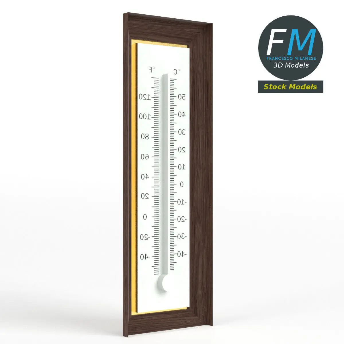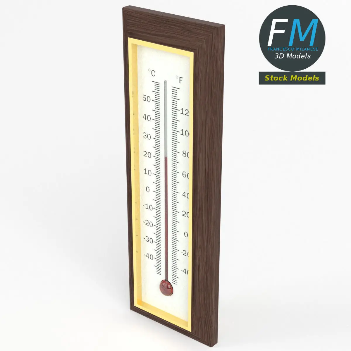Wall thermometer 3D Model. 3 individual objects (base, glass, liquid), each one with its own non overlapping UV Layout map, Material and PBR Textures set. The back side is not modelled, so you'll see the same textures of the front side. Production-ready 3D Model, with PBR materials, textures, non overlapping UV Layout map provided in the package.