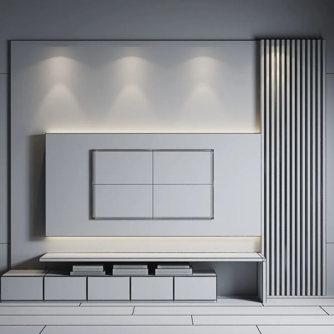 Wall TV set 1 dimensions: 3000mm*3700mm*450mm
