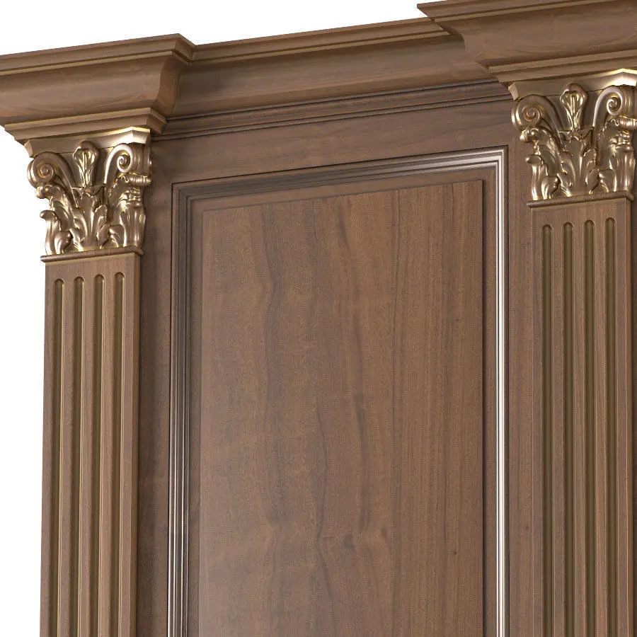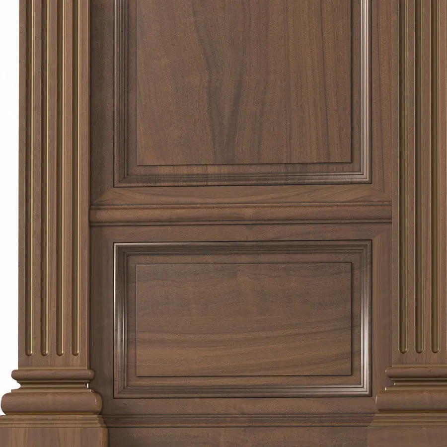 The classic style of the panels gives the interior coziness, nobility and aristocracy. The design of the panel is set by a wide trim, a two-level panel with three levels of depth of elements and a wide applied carved molding, which creates an interesting surface relief.
