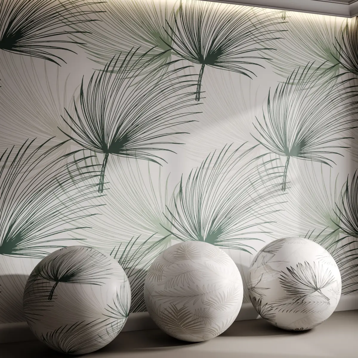 Tags: wallpaper, palm leaf, tropical pattern, botanical, leaf design, neutral wallpaper, organic decor, wall texture, soft tones, natural interior, tropical home, elegant pattern, botanical style, nature-inspired, decorative wall, subtle pattern, calming interior, exotic plant motif, beige palette, tropical vibe
