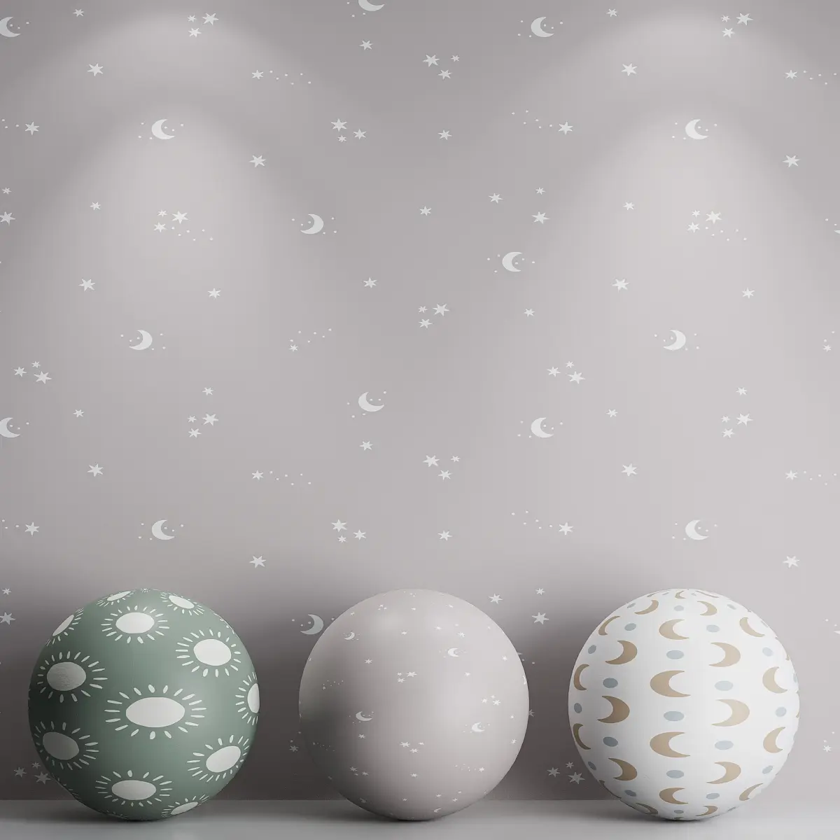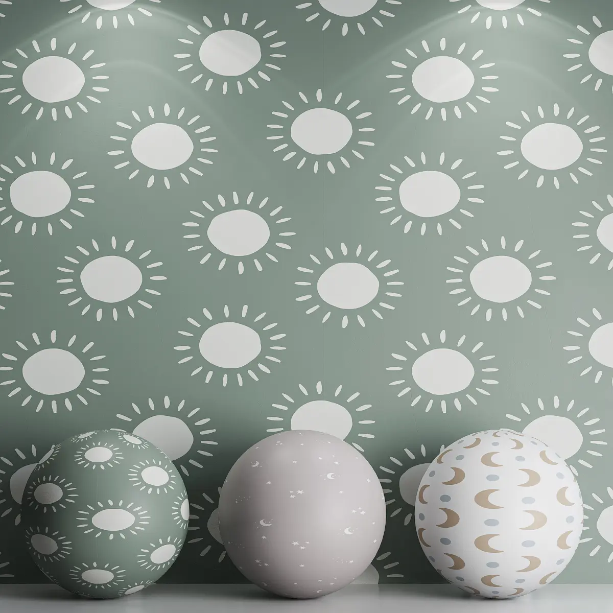 Tags: wallpaper, kids wallpaper, sun pattern, moon stars, celestial wallpaper, minimalistic, children room, nursery decor, playful design, pastel tones, star wallpaper, boho decor, nordic style, soft pattern, interior background, seamless wallpaper, 3D model, corona render, FBX export, OBJ format, soothing colors, modern decor