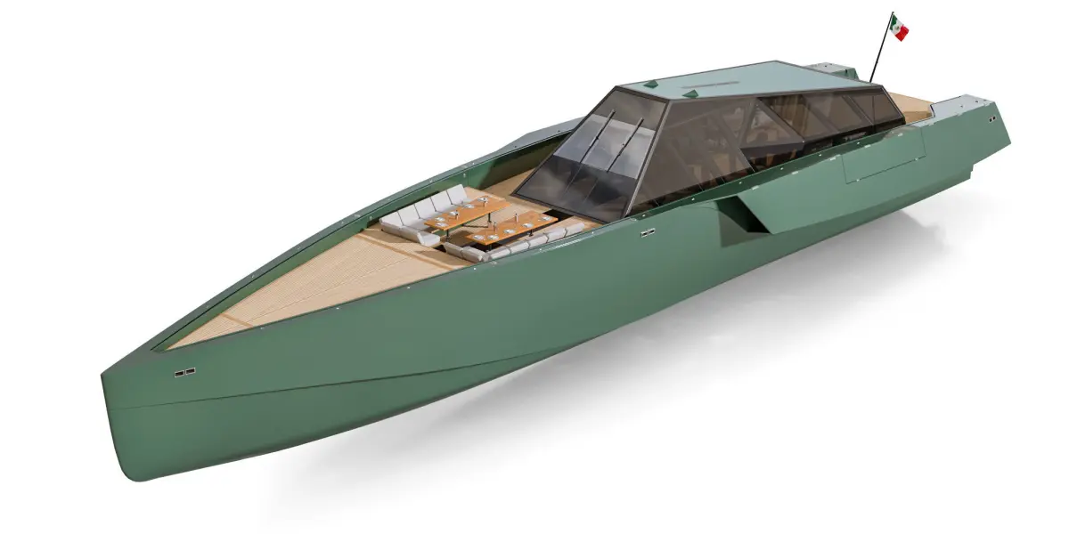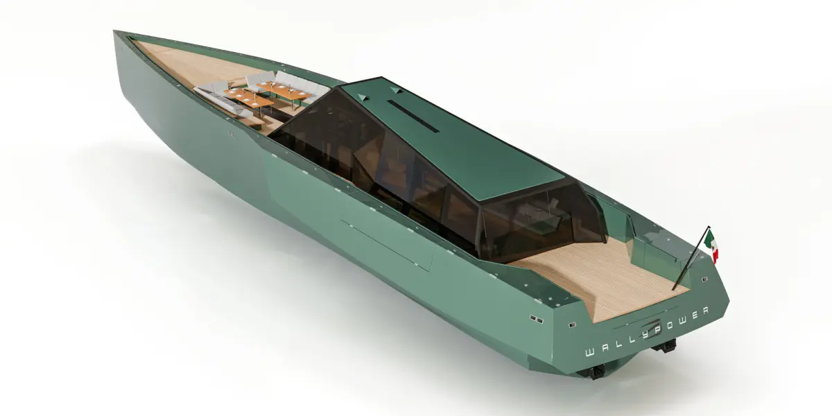 118 WallyPower, christened Galeocerdo, is a 118-foot (36 m) luxury motor yacht with a maximum speed of 60 knots (70 mph, 110 km/h) produced by Wally Yachts.[1] The yacht is narrow and angular in design with black glass housing, driven by three Vericor TF50 gas turbines generating 5,600 horsepower (4,200 kW), each driving a Rolls-Royce Kamewa water jet, two steerable outboard and a non-steering booster on the centerline. The steerable water jets also have a diesel engine input for a 370 hp (280 kW) Cummins diesel, thus making the ship a Combined Diesel or Gas Turbine (CODOG) configured vessel. The total power output is 16,800 horsepower (12,500 kW). One 118 WallyPower has been constructed and it is owned by the Kondakji family, with a cost of £14M.