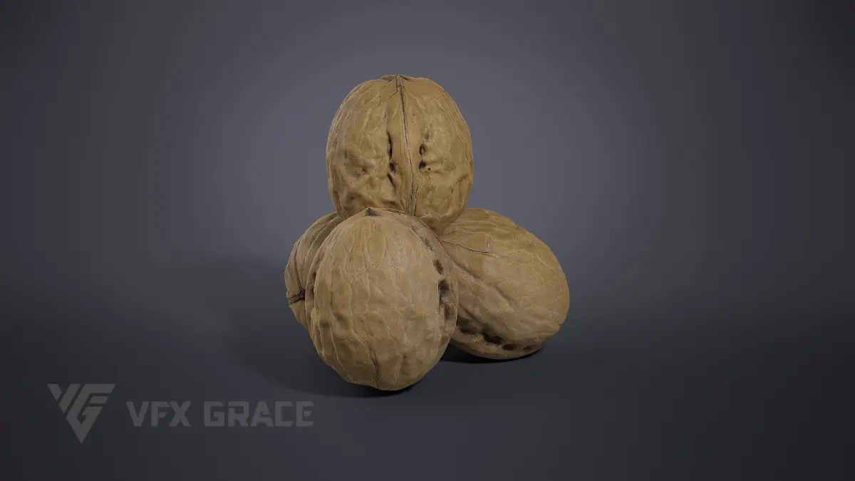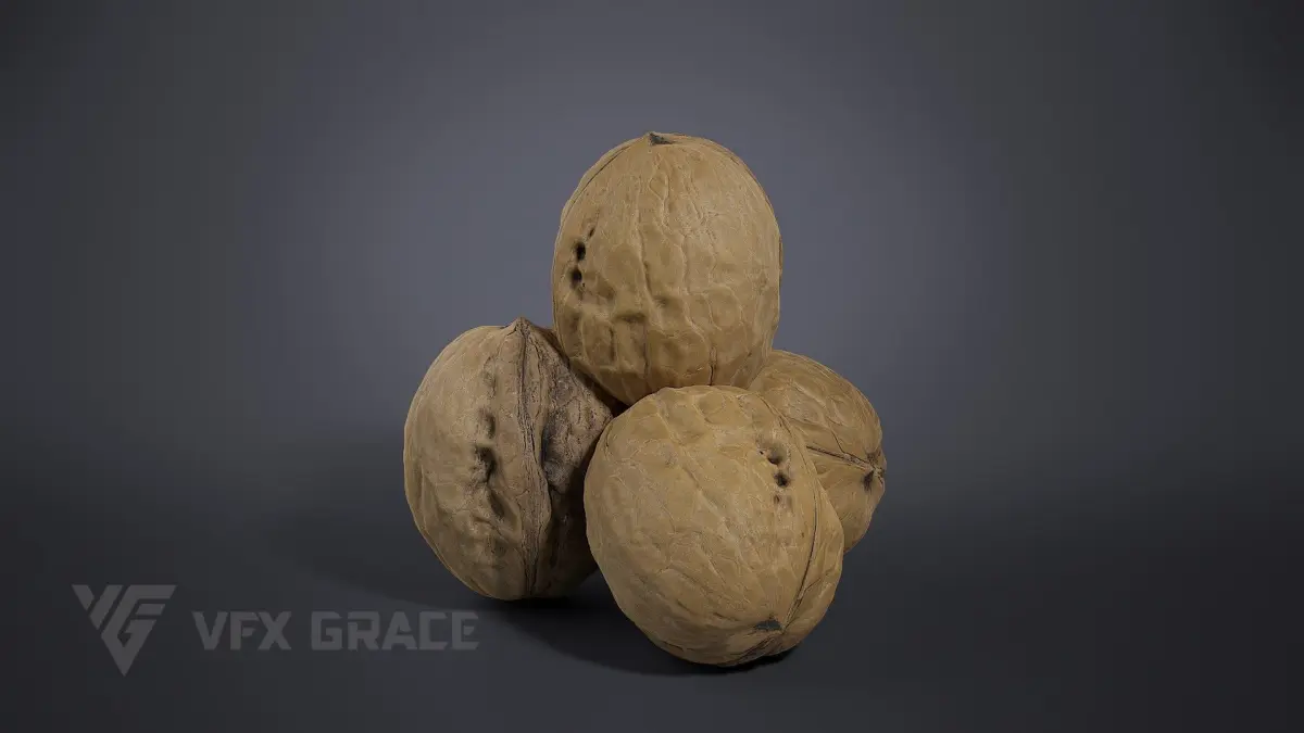 This is a walnut model made with Blender 3.6.2 and Cycles renderer. The PBR maps come with accurate physical properties and rich details, which can add realism to your scenes.