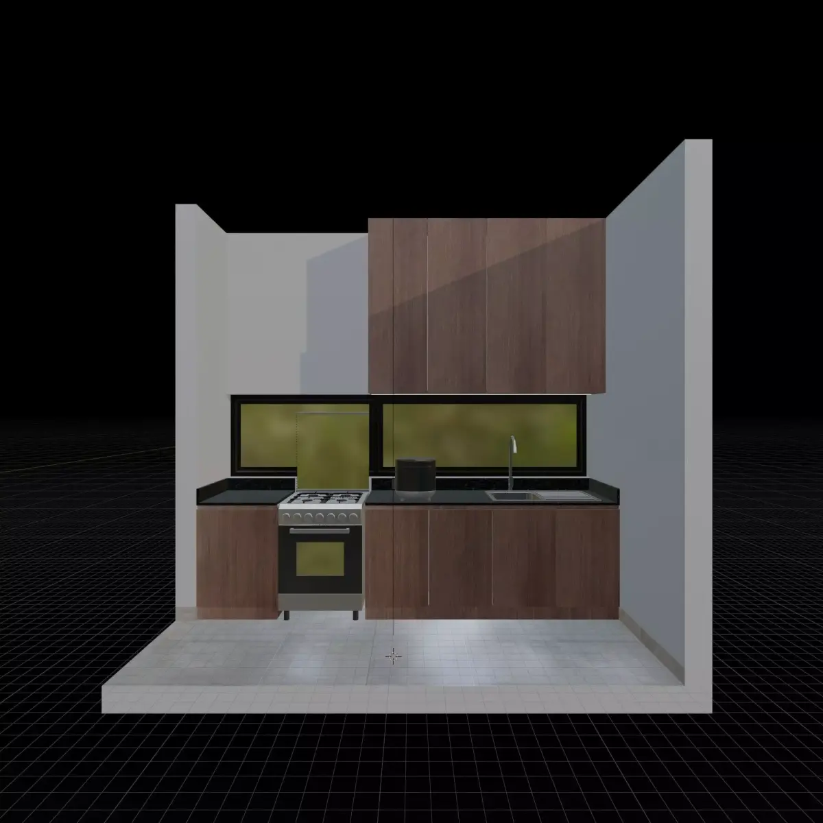 Home Catalog Walnut And Black Isometric Kitchen 3D model