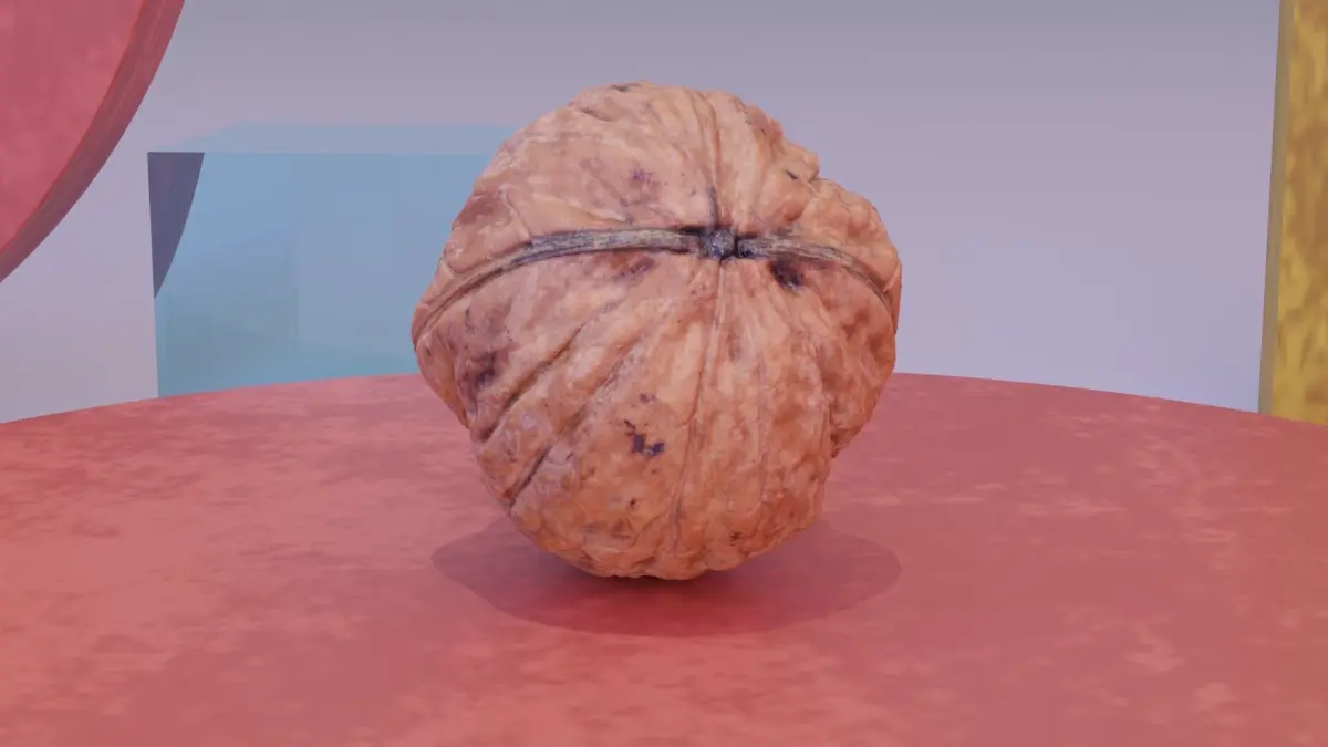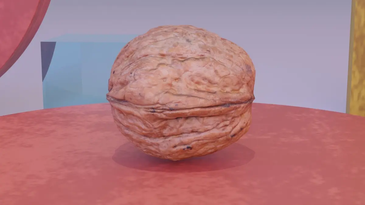 This is a photorealistic high-poly 3D model of the walnut fruit.