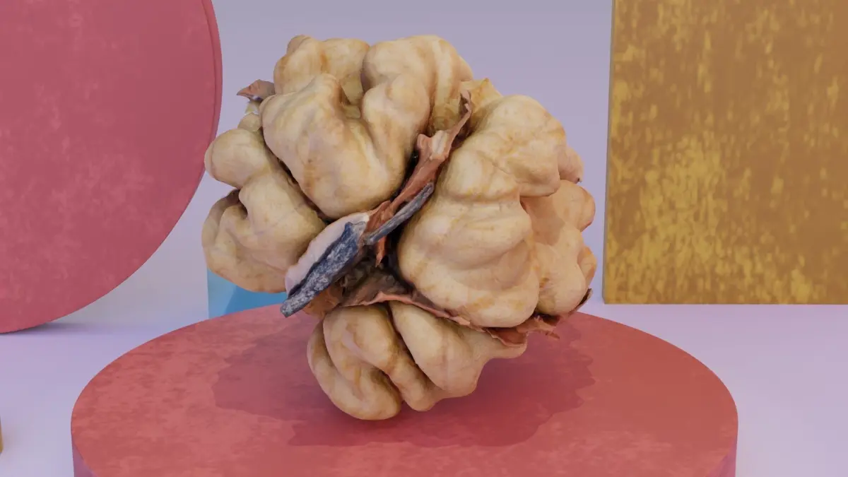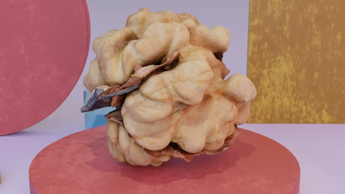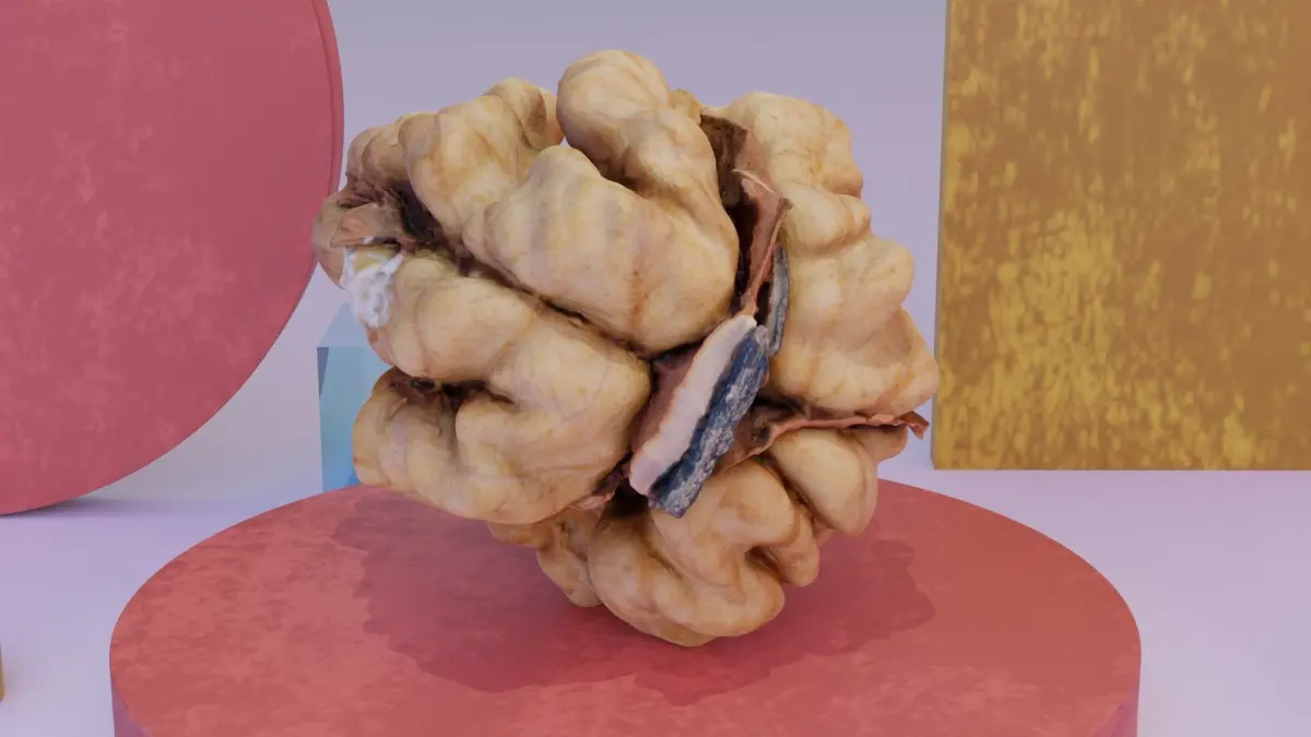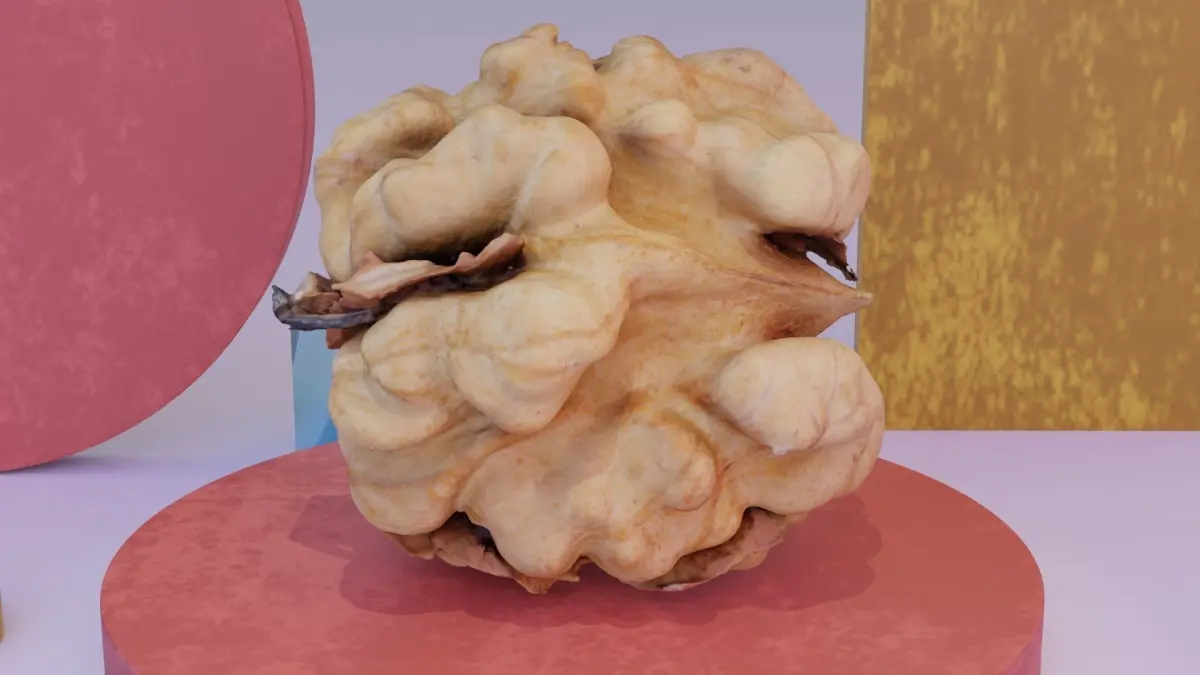 This is a photorealistic high-poly 3D model of the walnut kernel.