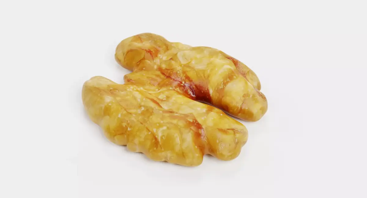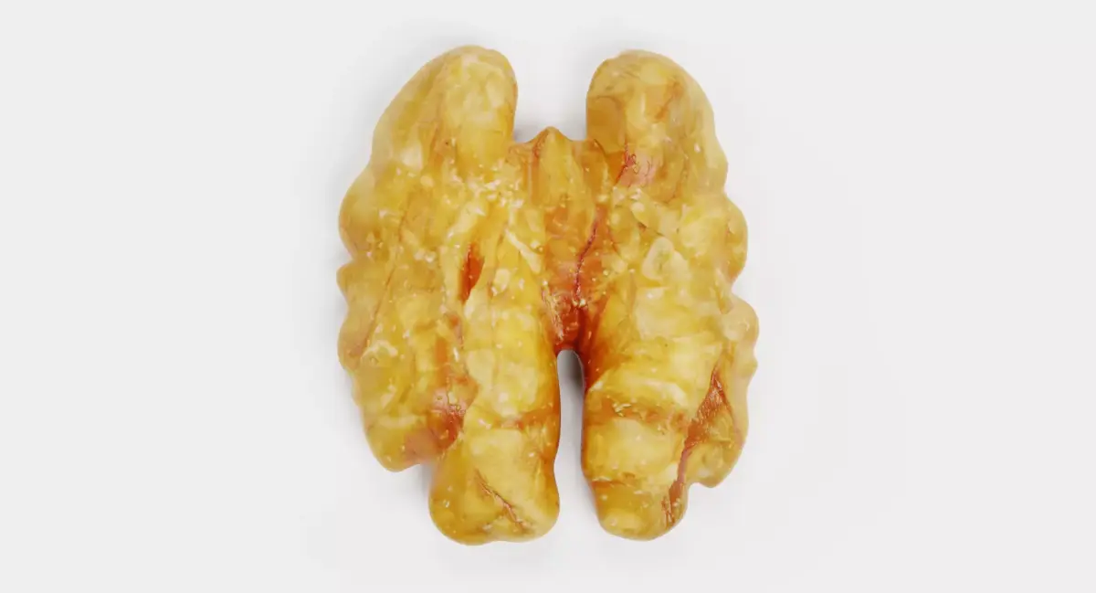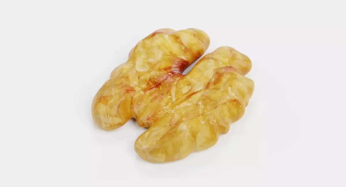 An authentic 3D model of a shelled walnut kernel, capturing the detailed, brain-like ridges and complex surface patterns of the Juglans regia. This asset features refined organic textures that replicate the natural matte finish and subtle color variations of a fresh kernel. It is a perfect addition to culinary visualizations, healthy lifestyle imagery, or detailed macro shots where botanical precision and natural realism are paramount.