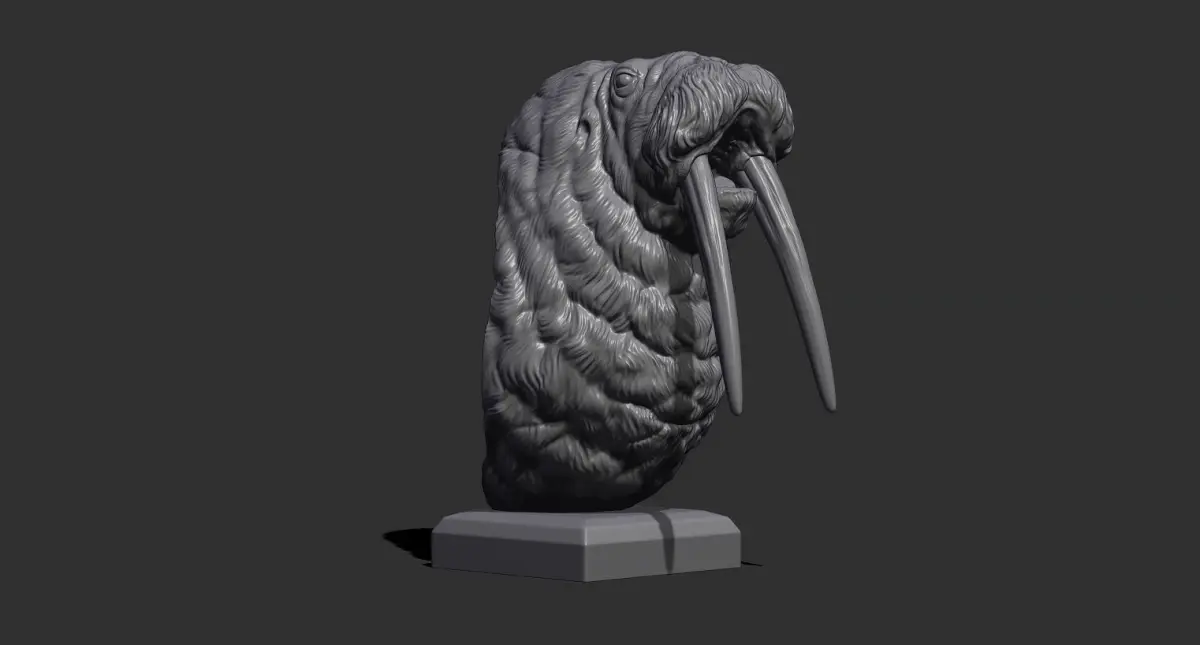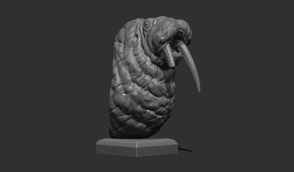 400K STL, OBJ triangulated mesh, Walrus bust merged