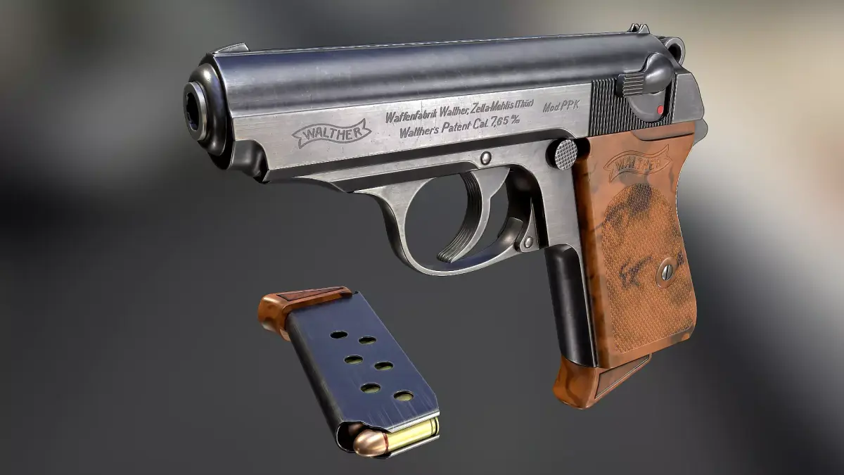 The Walther PPK (German: Polizeipistole, or police pistol) series pistols are blowback-operated semi-automatic pistols, developed by the German arms manufacturer Carl Walther GmbH Sportwaffen. Walther PPK, a smaller version of the PP with a shorter grip, barrel and frame, and reduced magazine capacity. The Walther PPK has been James Bond's signature weapon for over 60 years, introduced in the Dr. No novel (1958) and film (1962).