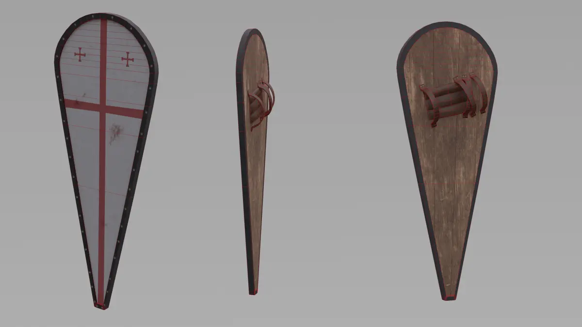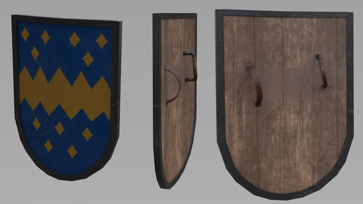 Low poly medieval shields with PBR Textures. Models were made with Blender and textured with substance painter.shields are edge splitted with blender modifier.