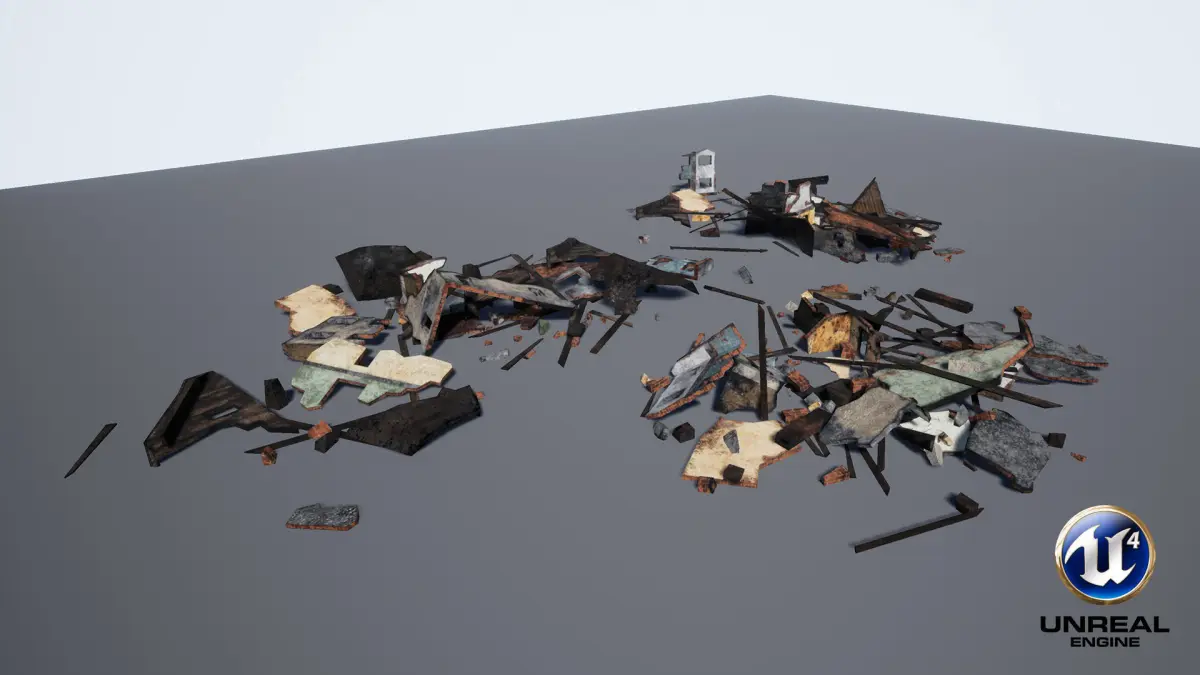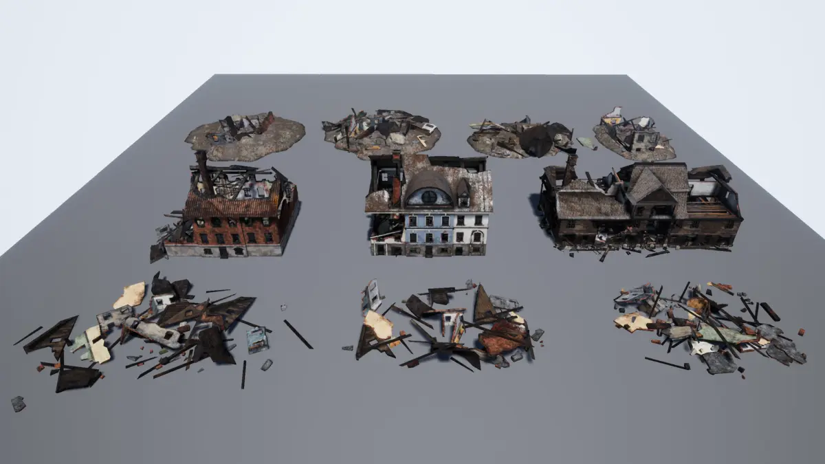 War Debris Pack - a low poly war decoration pack, includes huge piles of rubble and 3 destroyed buildings.