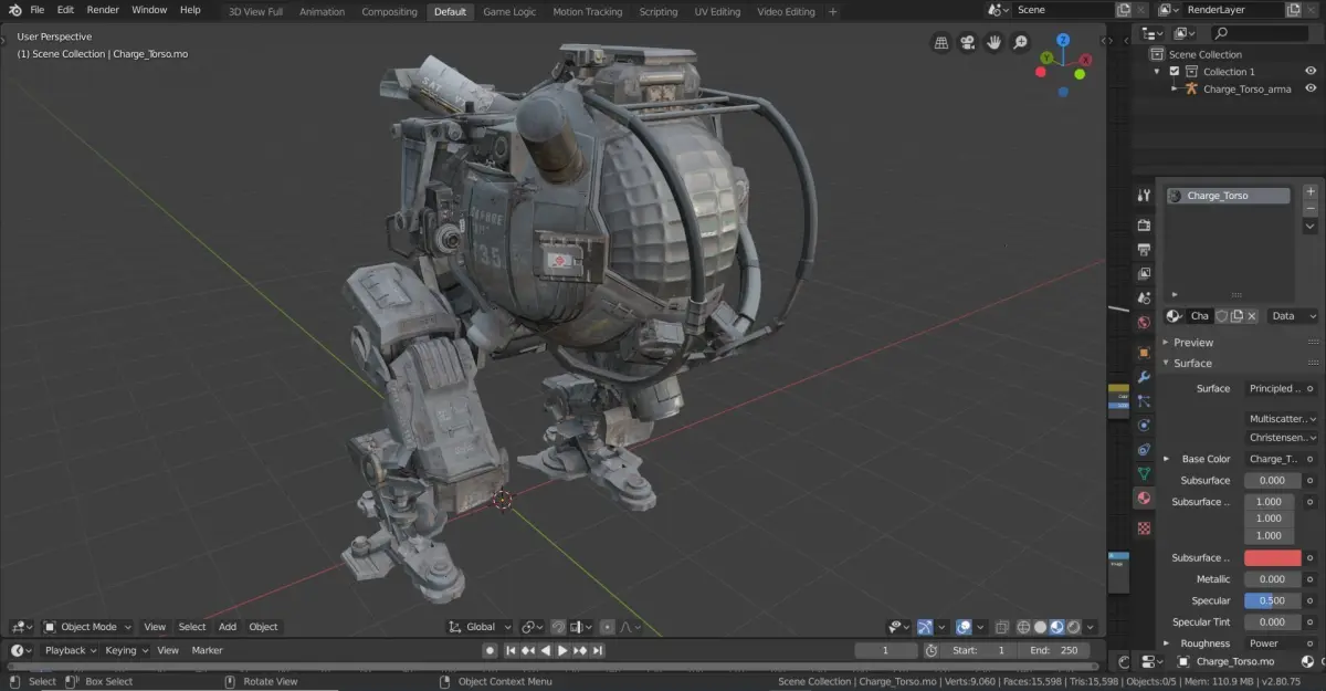 War Robot Character R05ChargeRobot Character 3d 3dmodel cg game war machine real blend blender fbx obj stl tga robo