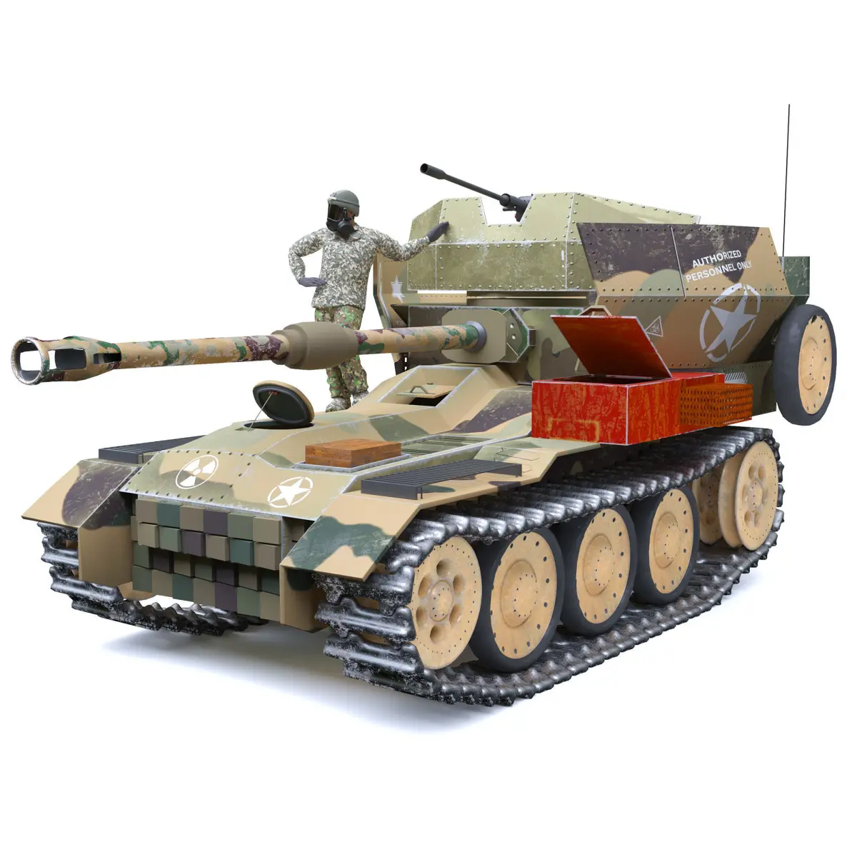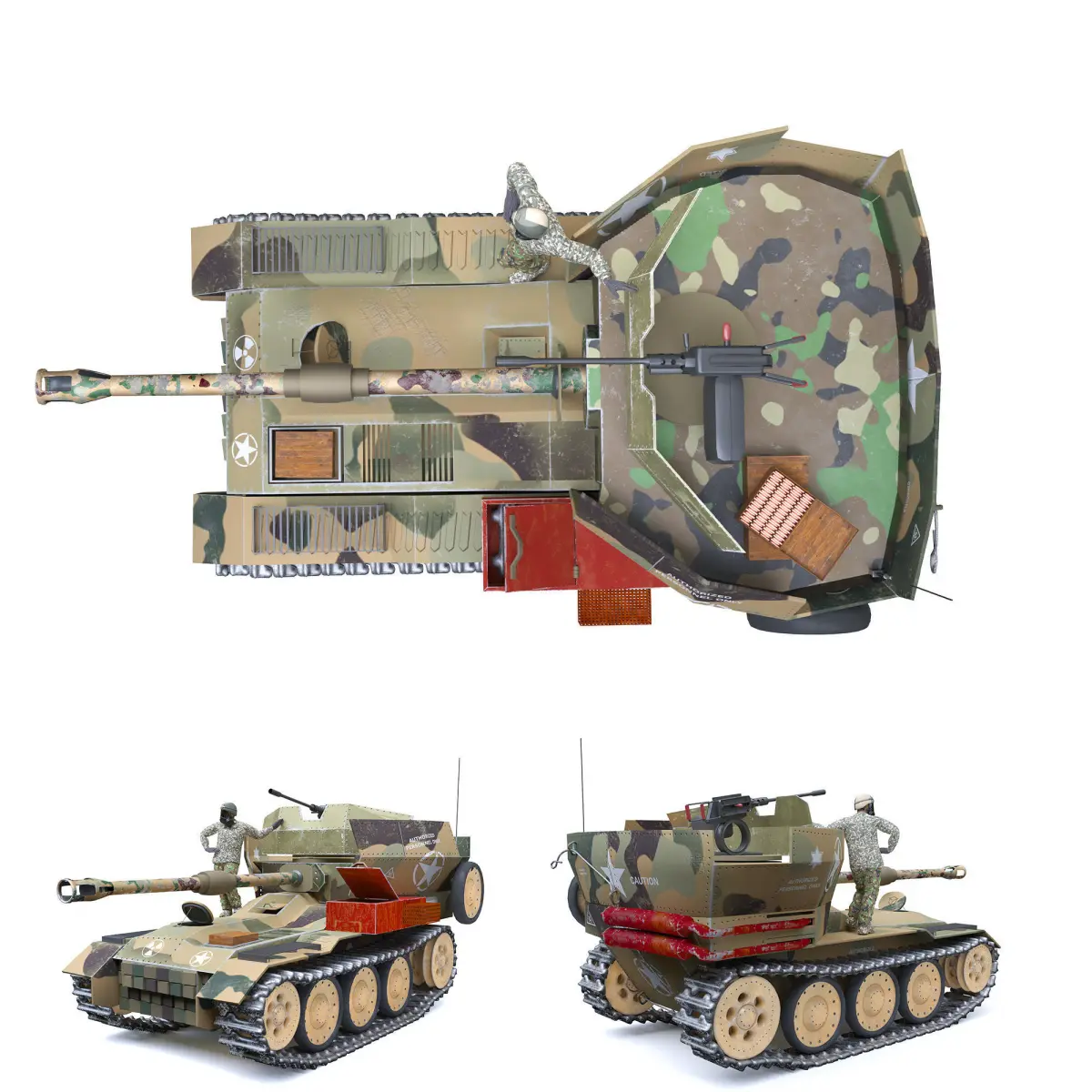 Hello dear designersProduct Name:war tankOutput version: 3D Max 2016-vray,3dmax 2016 coronaWidth: 351Length: 666Height: 311Polygon above:150561Vertex:143038Lowe Poly BODY :54926Vertex BODY: 48785Formats: 3D Max 2016 and OBJRendering: vray5.2.corona8.hf1